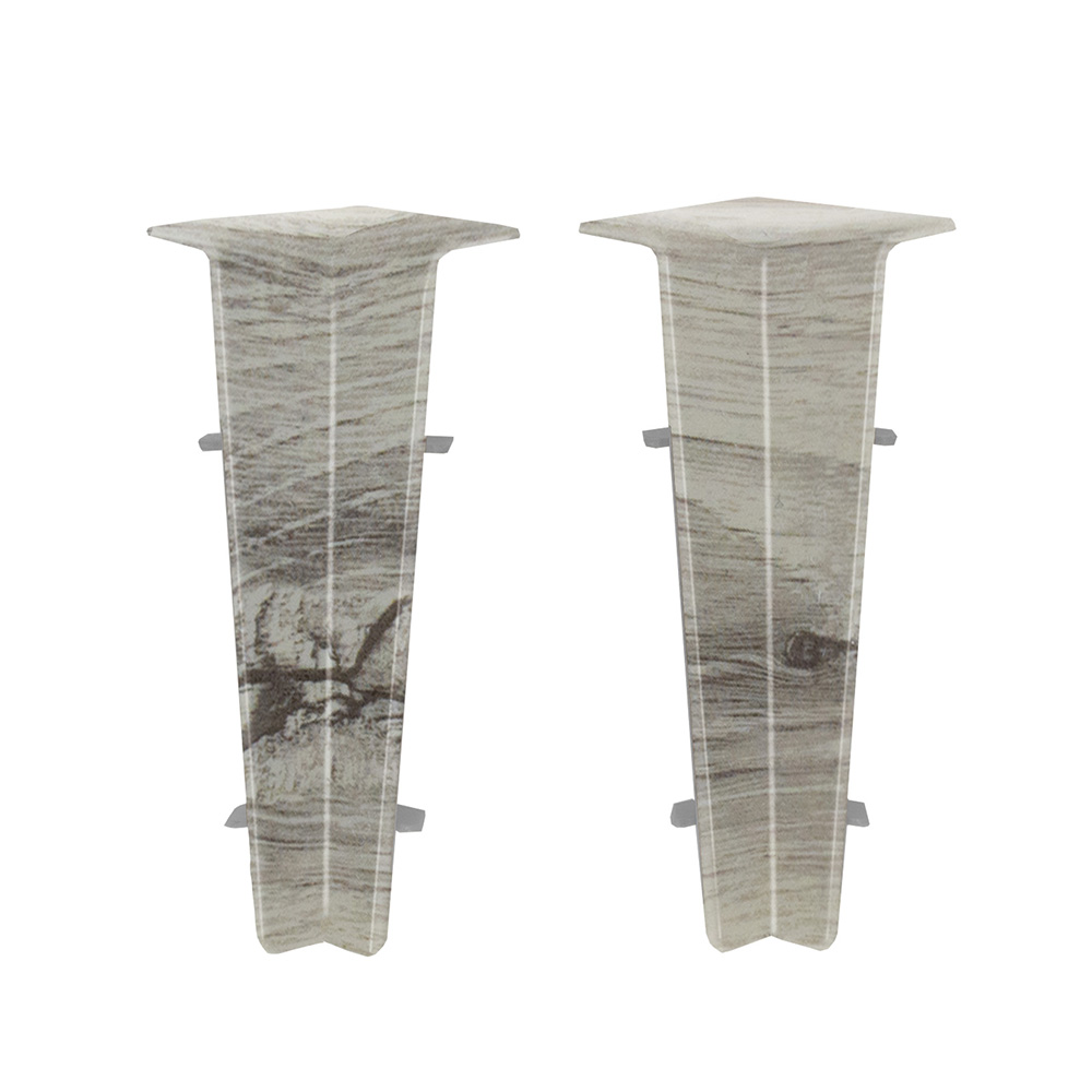 Угол внутренний — декоративный элемент, которой потребуется купить для монтажа пластикового напольного плинтуса. Обычно в помещении чётное количество углов, поэтому этот аксессуар продаётся комплектом из двух штук. Изделие устанавливают в последнюю очередь, уже после того как плинтус прикрепят к стене. Оно имеет конструкцию, позволяющую поставить его на место без применения клея или самореза, простым нажатием сверху вниз.