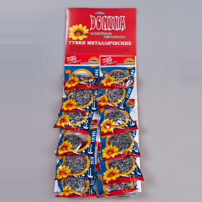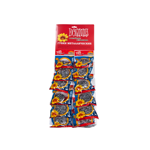 Абразивное средство из тонких переплетенных стальных нитей (нержавейка, оцинковка) для удаления стойких загрязнений, пригоревшего жира, нагара с прочных поверхностей (чугун, сталь, нержавейка). Эффективно очищает, не впитывает запахи, быстро сохнет, долговечна. Не подходит для тефлона и деликатной посуды.