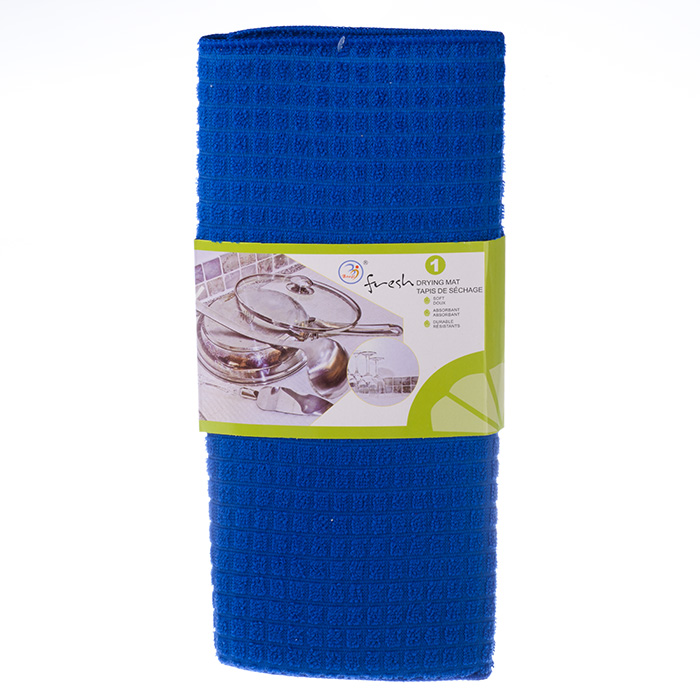 Абсорбирующий коврик из тончайших синтетических волокон, предназначенный для сушки посуды. Структура микроволокна мгновенно впитывает объем жидкости, превышающий вес самого изделия. Коврик быстро высыхает, что препятствует появлению неприятных запахов. Отлично заменяет громоздкие сушилки, компактно складывается.