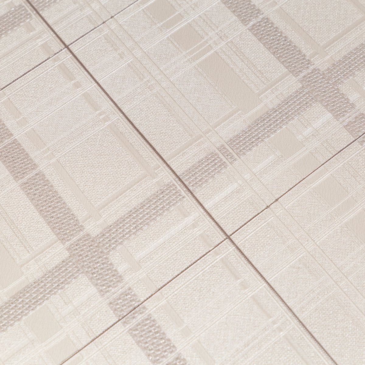 Рисунок и фон объединяет фактура натурального льна в двух вариациях – с вкраплениями шелковых нитей и без них. Облаченные в геометрические формы, льняные панели приобретают 3D-рельеф и напоминают тканевые панели ручной работы. Акцентные прямые линии усыпаны блестящими дорожками мерцающих блесток и подсвечены мягким сиянием перламутра. Мерцающие отблески декора уютно окутывают дизайн и добавляют нотки благородства.