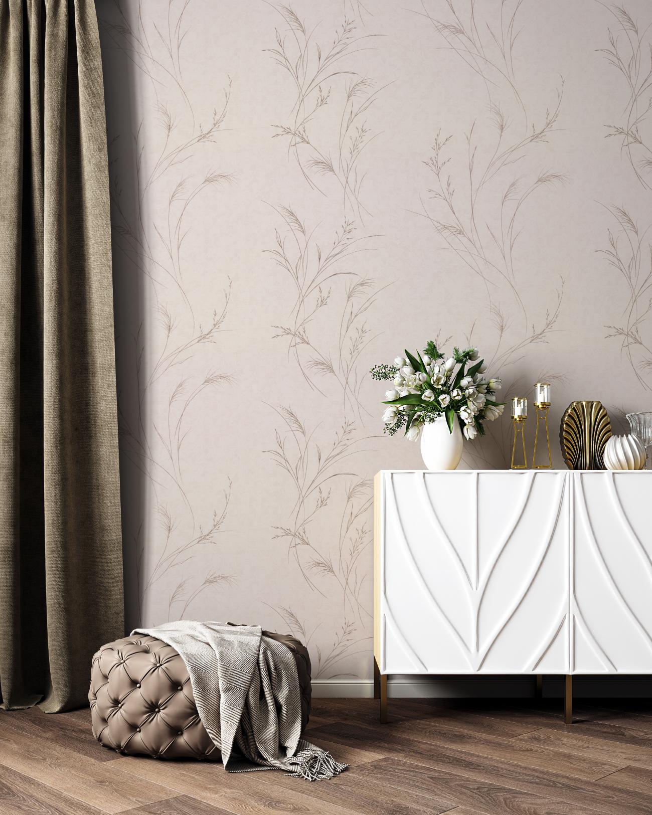 Коллекция Melodia вдохновлена изящными луговыми травами и мягким утренним сиянием солнца. Тонкие вытянутые веточки визуально увеличивают высоту потолков, а деликатные металлизированные линии стеблей добавляют блеска и наполняют интерьер умиротворённостью.