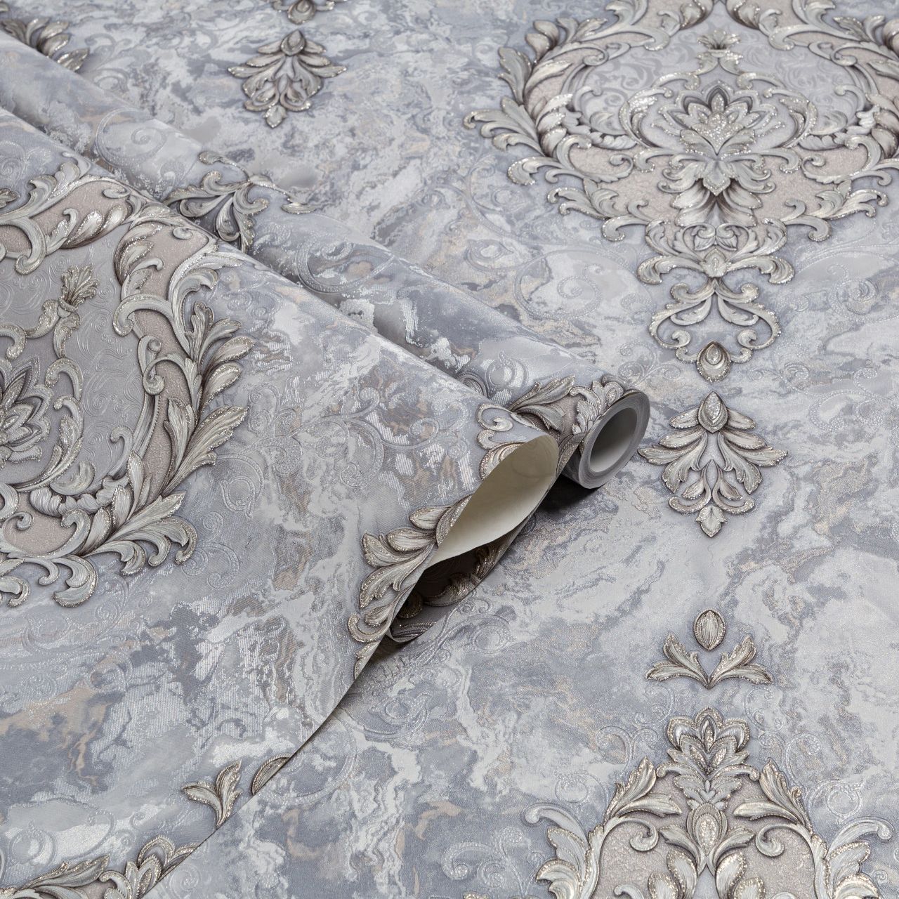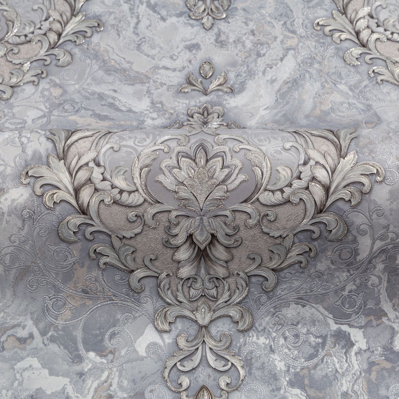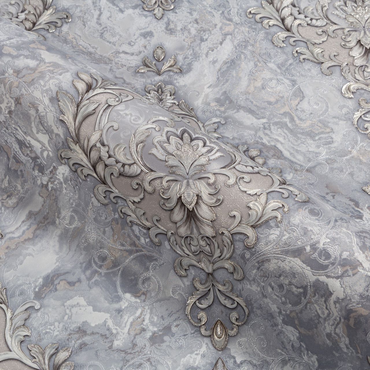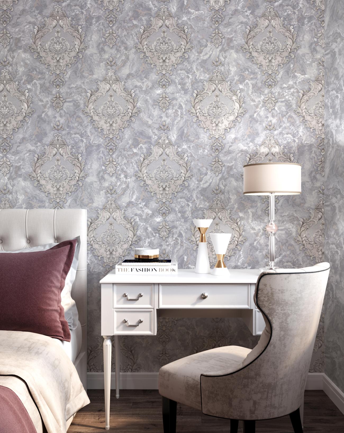 Мотивом Lumeria является изысканный дворцовый узор с многослойным рельефным тиснением. Его ажурные линии переплетаются и задают гармоничный ритм. Лепестки вензелей украшены тонкими блестящими акцентами, которые напоминают россыпь мерцающих кристаллов и страз. Покрытие из матового золота и серебро, расцвеченное драгоценным декором, придает обоям эффект ювелирной работы.