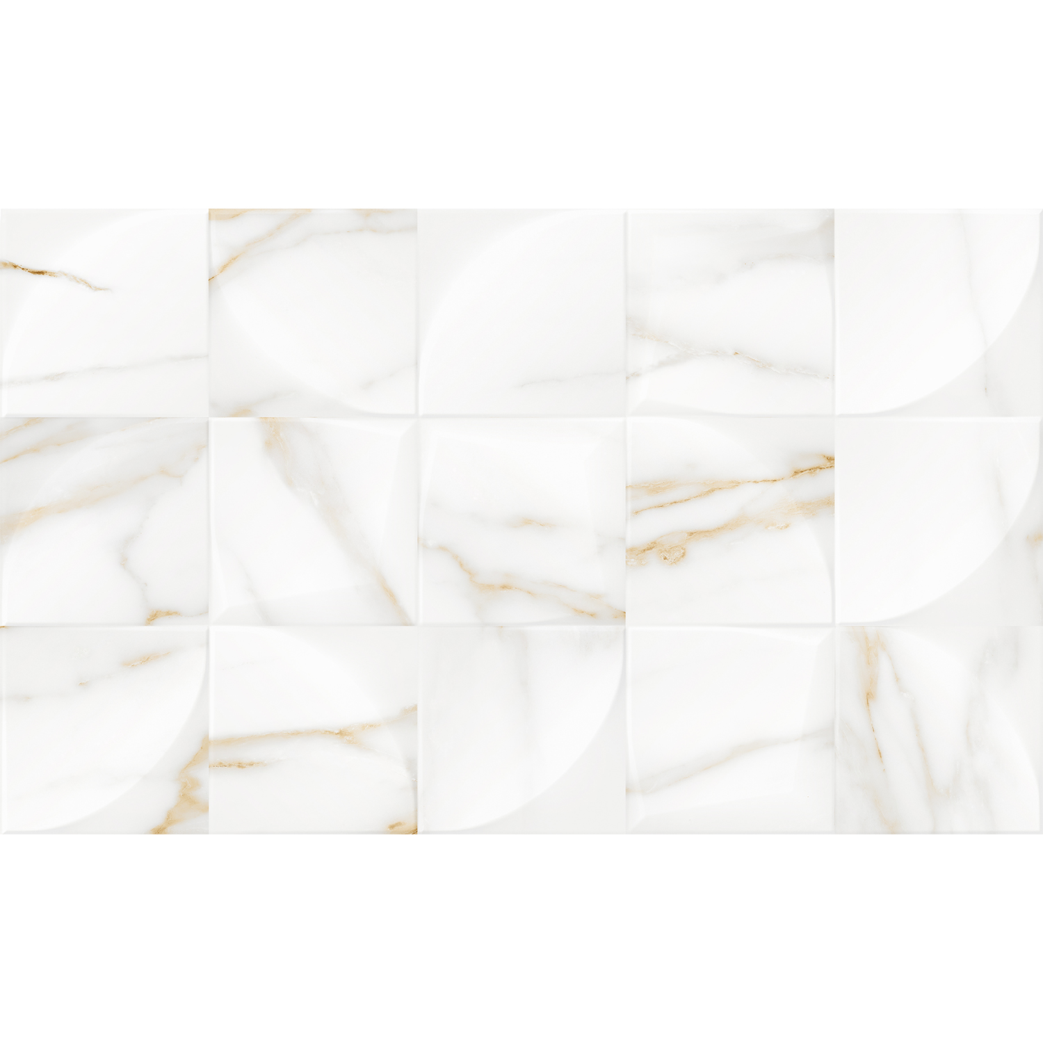 Основные цвета коллекции: белый с золотыми прожилками и бежевый. Грамотный набор элементов коллекции позволяет создавать многогранные, тёплые и стильные интерьеры исключительно её составом. Текстура базовых плиток – натуральный мрамор Calacatta Oro, у тёмной плитки – оникс, у акцентной (декоративного фона) – сочетание обеих основных текстур коллекции.
