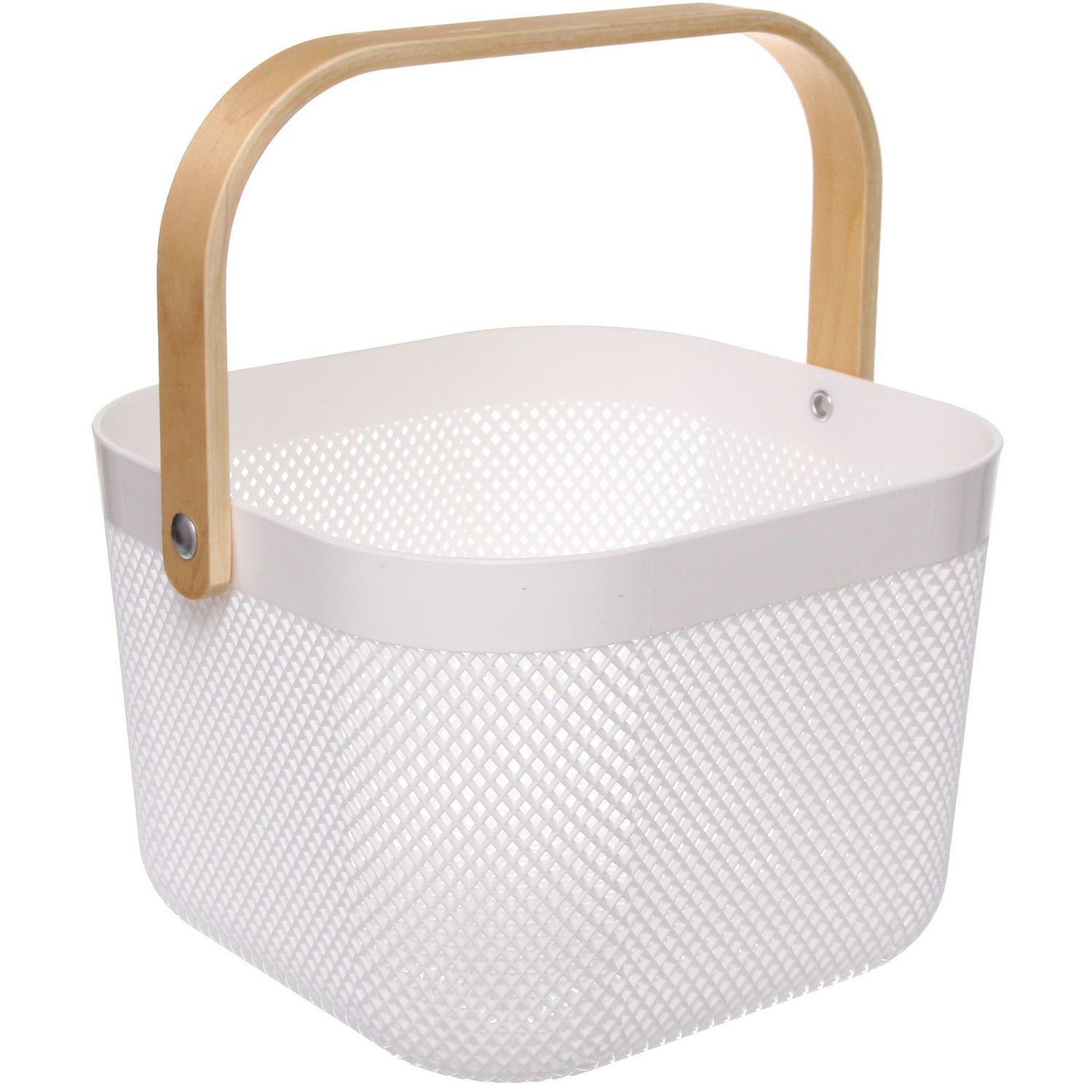 Корзина СЕЛФИ Фарго 24х23,5х18см с деревянной ручкой белая