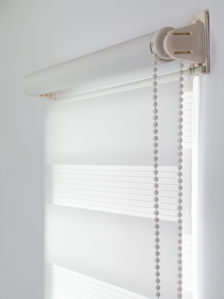 Рулонные шторы системы "день и ночь" предназначены для защиты от солнечных лучей. Световой поток можно регулировать при помощи подъемного механизма, который сдвигает полотно ткани смещая светлые и темные полосы полотна ткани и накладывая их друг на друга. Данную рулонную штору можно устанавливать над проемом окна или внутри него, либо на потолок, т.к в комплект входят универсальные кронштейны. При необходимости, шторы шириной до 80 см можно установить на створку окна без сверления (в комплект фурнитуры к рулонным шторам день и ночь, шириной до 80 см дополнительно входят две пластины с двухсторонним скотчем).