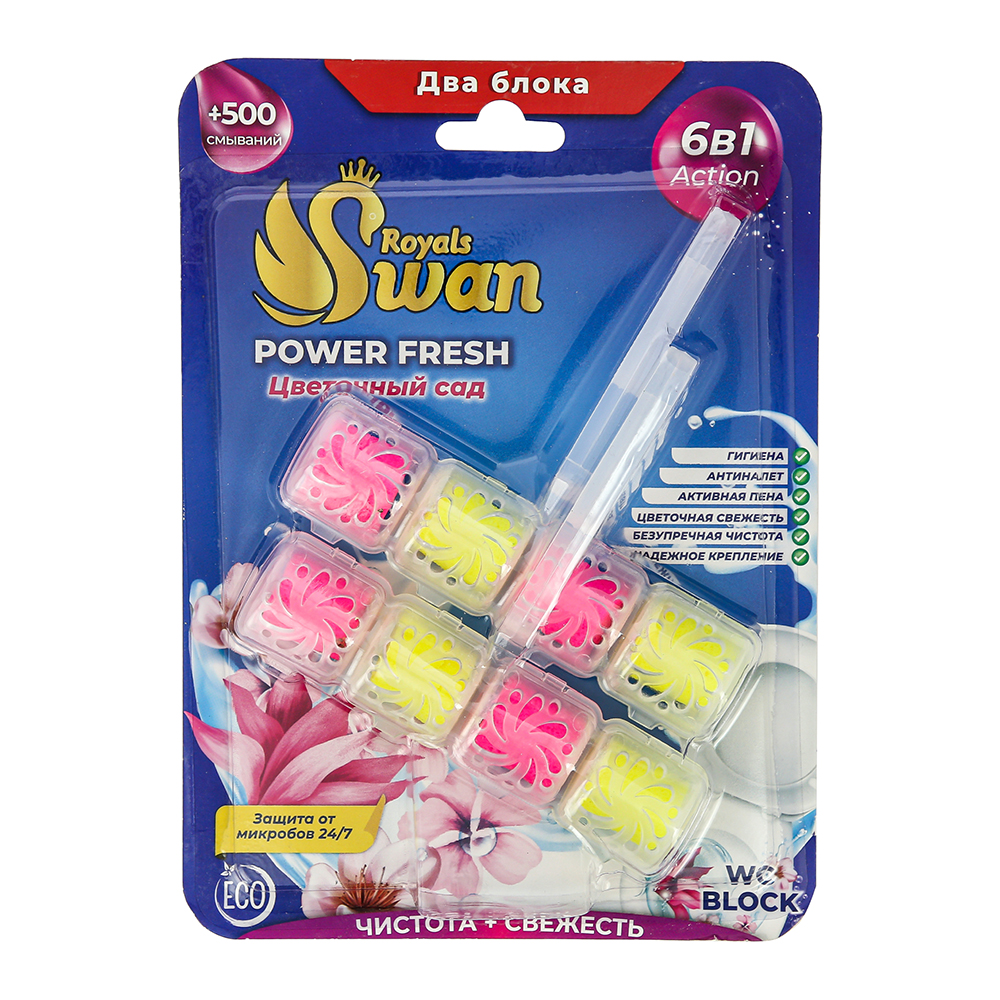 Блок для унитаза Royals Swan — это решение для безупречной чистоты и гигиены в вашем санузле. Он обеспечивает комплексную защиту, работая 24 часа 7 дней в неделю: эффективно блокирует и нейтрализует неприятные запахи, создавая постоянное ощущение свежести, активно препятствует образованию загрязнений и подавляет рост микробов для поддержания здоровой среды, а также помогает сохранять внутреннюю поверхность унитаза идеально чистой и блестящей, сокращая необходимость в частой механической чистке.