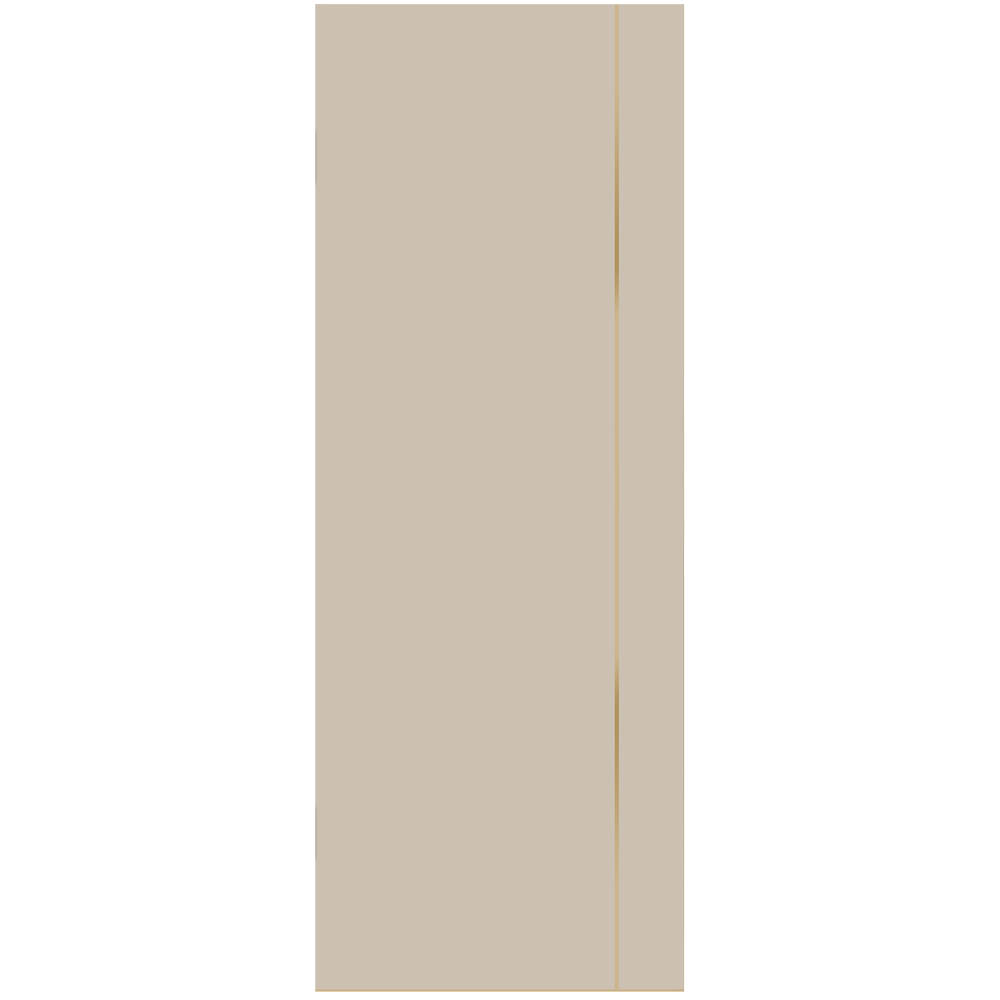 Межкомнатное каркасно-щитовое универсальное полотно, глухое. Каркас по периметру - MDF. Заполнение - ячеистый картон. Покрытие - плёнка емалюкс, кромка алюминиевая, цвет "золото", с 4х сторон. Украшение - вертикальный молдинг с обеих сторон полотна. В полотно врезан магнитный замок сантехнический M1895 MSG.