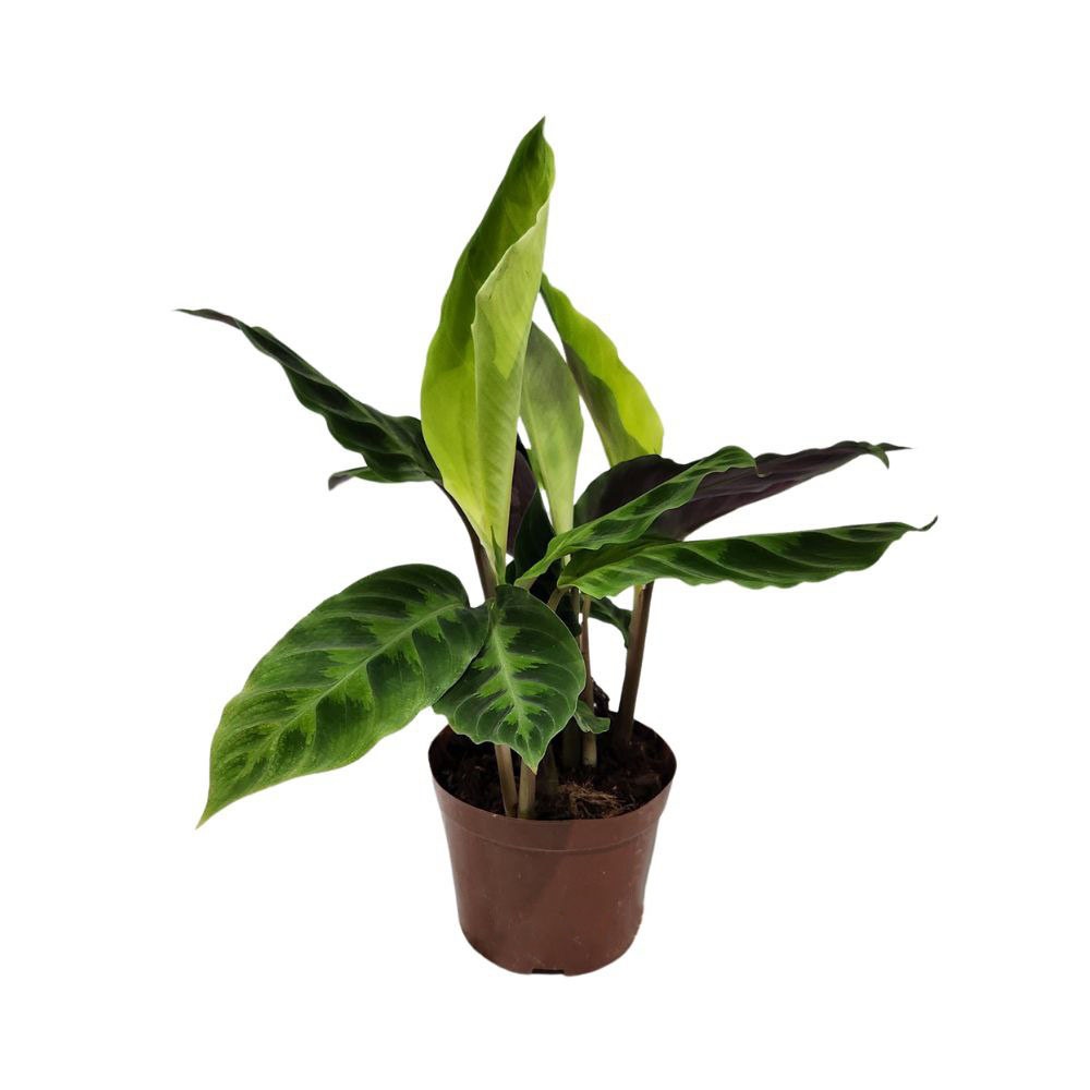 Растение в горшке диаметром 11 см уже сформировало пышный куст и готово стать утонченным акцентом в интерьере. Калатея требует внимания: яркий рассеянный свет без прямого солнца, регулярный полив теплой отстоянной водой и высокая влажность воздуха. Это выбор для тех, кто готов заботиться, чтобы каждый день наслаждаться её роскошной, успокаивающей красотой.
