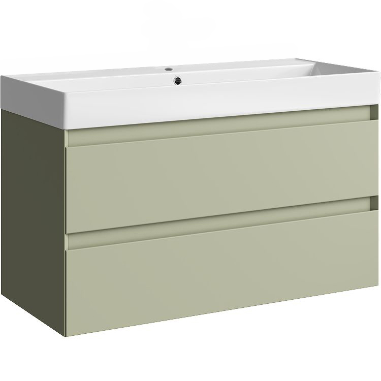 Тумба-умывальник AQWELLA Geometria 100 шалфей зелёный + раковина Вилис
