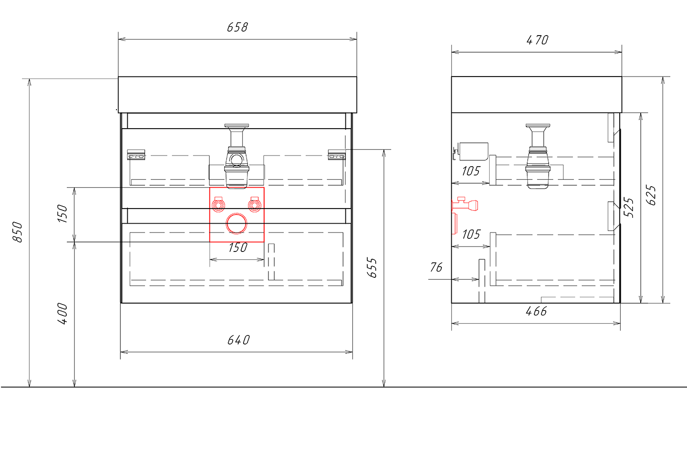 Корпус и фасад изготовлены из МДФ — стабильного материала, устойчивого к перепадам влажности в условиях ванной комнаты. Матовое крашеное покрытие придаёт поверхности однородный, тактильно приятный вид.