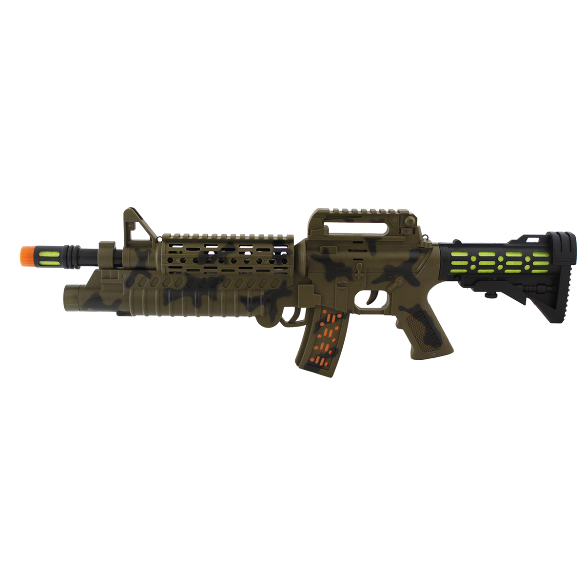 Игрушечное оружие - это необходимый атрибут для активной ролевой игры. Игра в войнушку любимое развлечение мальчишки. С таким снаряжением он станет победителем в каждой битве. Игрушка идеально подойдёт детям старше трёх лет, подарит массу удовольствия и весёлых моментов, развивая воображение и двигательные навыки ребёнка.