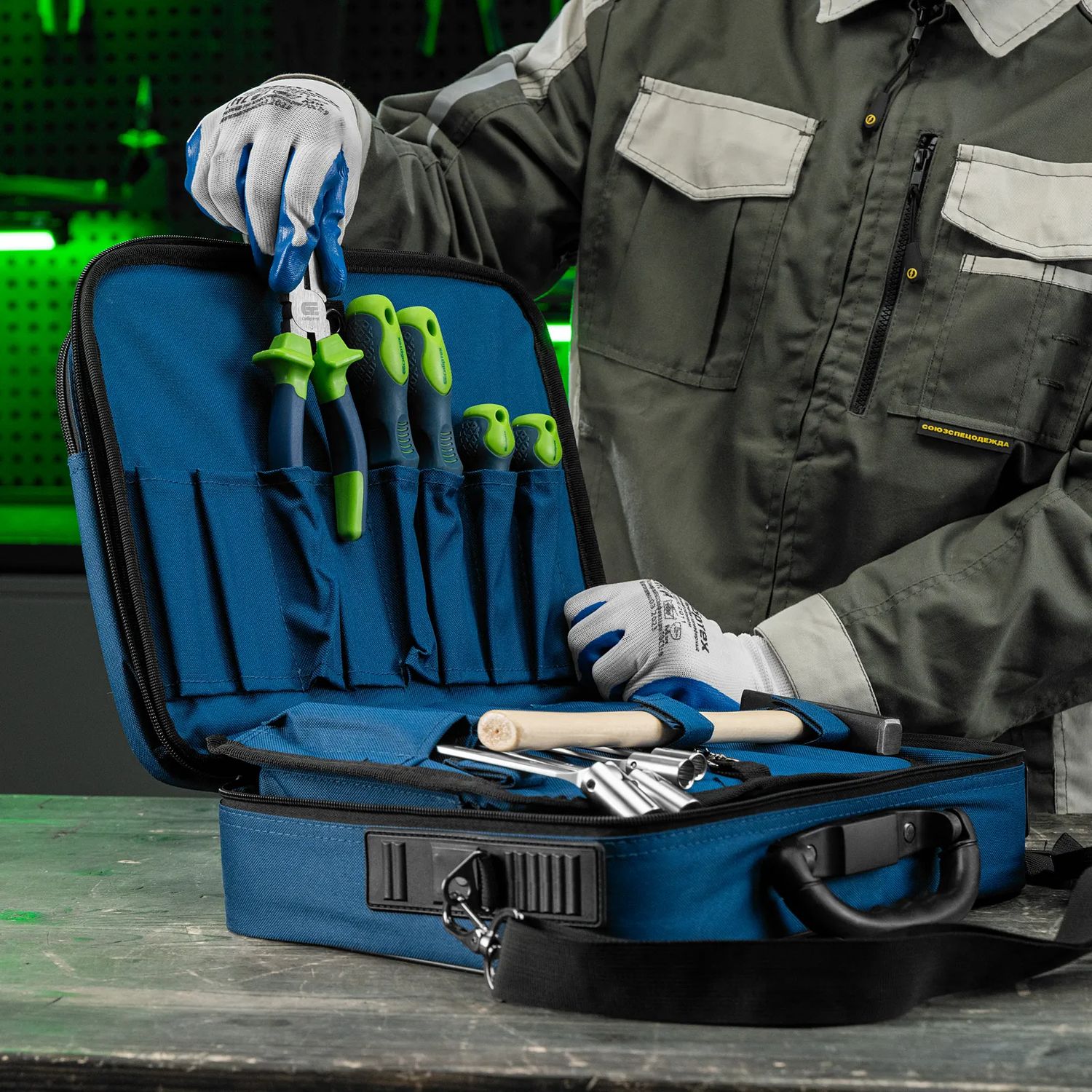 - рациональная организация пространства — внутренний отсек имеет разделитель, также внутри предусмотрен зажим для длинных инструментов