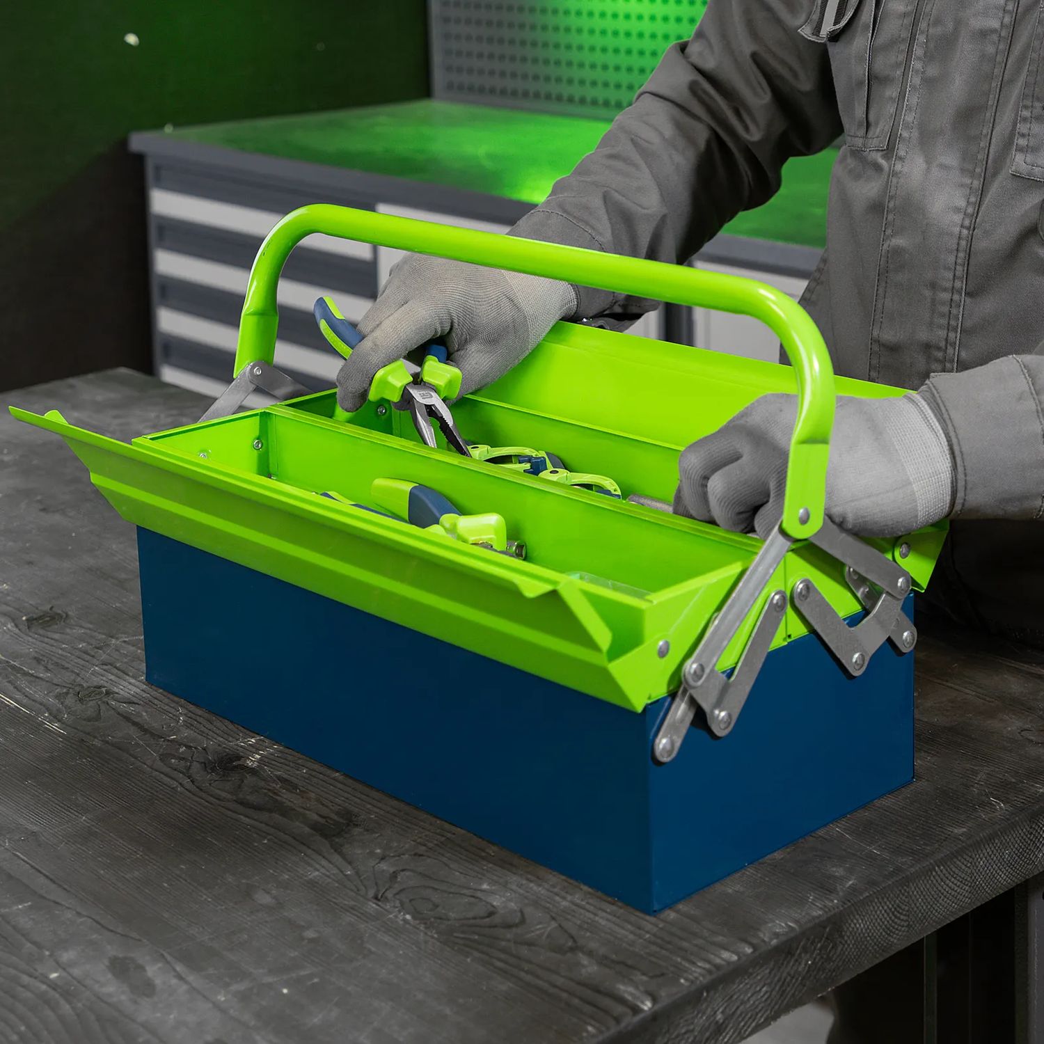 - поворотная ручка — удобно размещать и извлекать инструменты