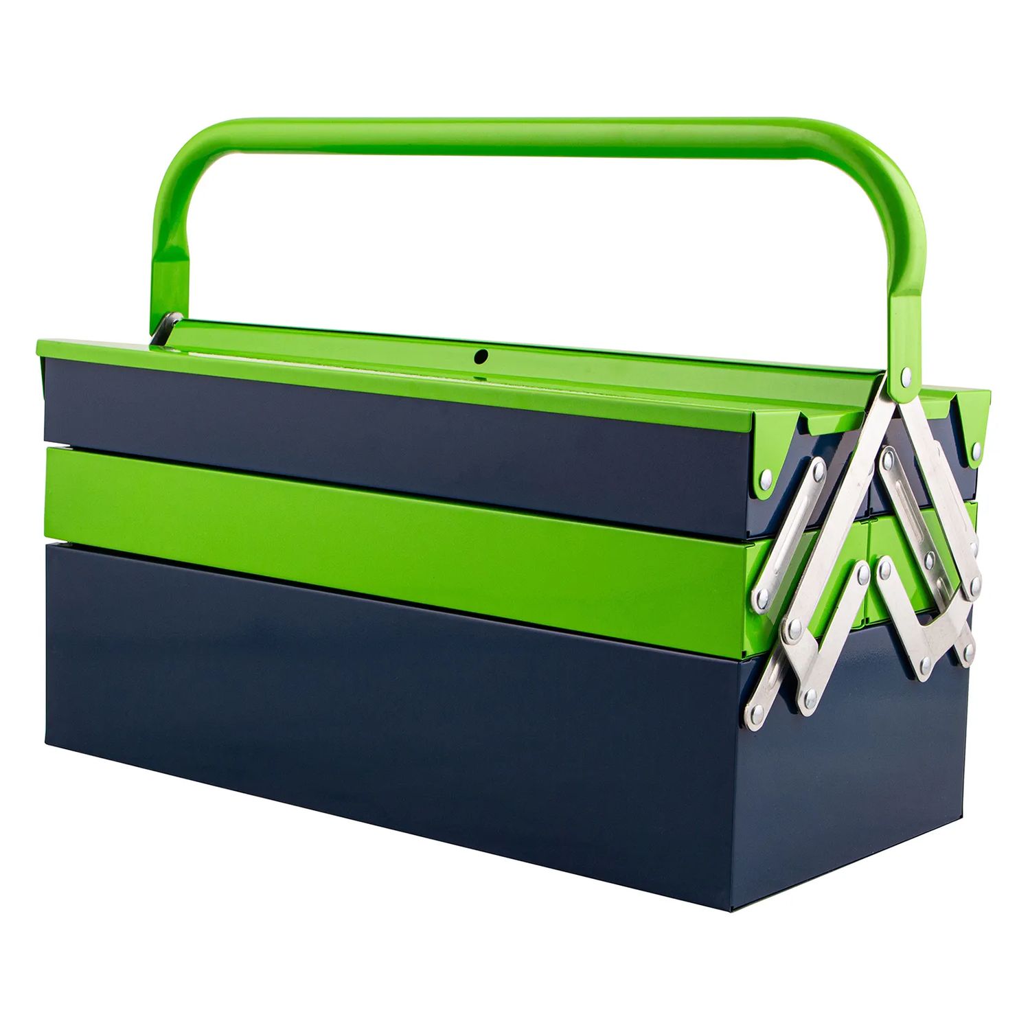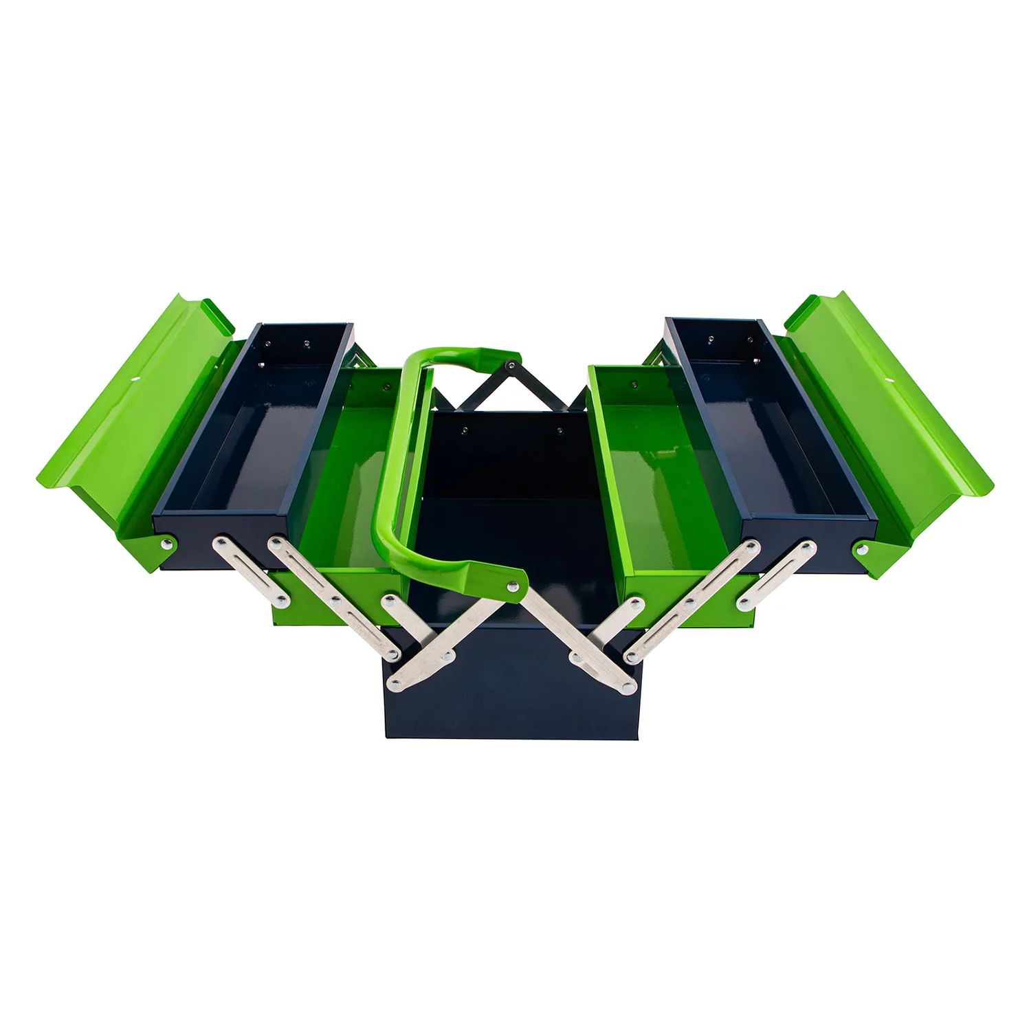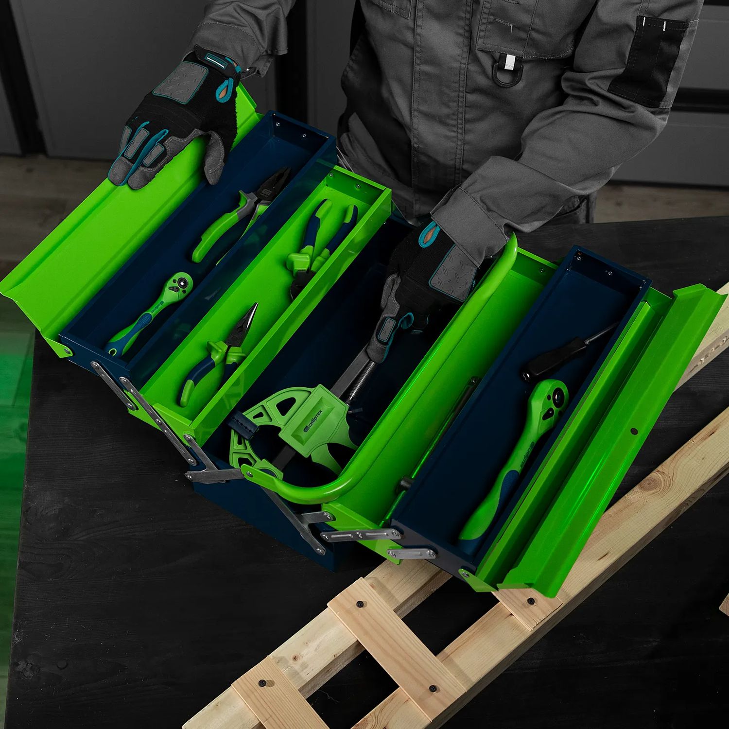 - удобное использование — ящик легко раскладывается, ручка поворачивается и не мешает размещать или извлекать инструменты