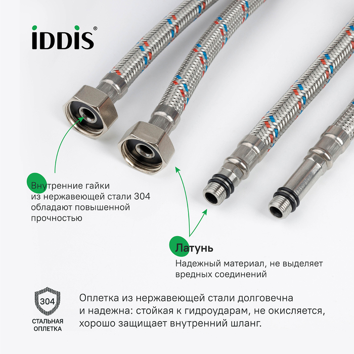 - сочетание элементов позволяет гибкой подводке IDDIS выдерживать давление до 80 атм