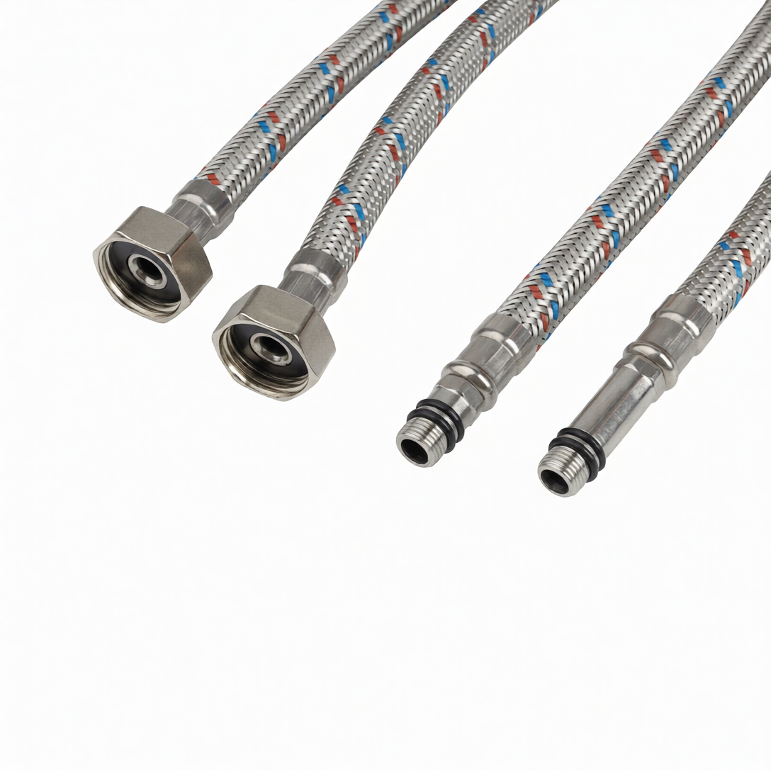 - прочная и стойкая к гидроударам оплетка из нержавеющей стали AISI 304