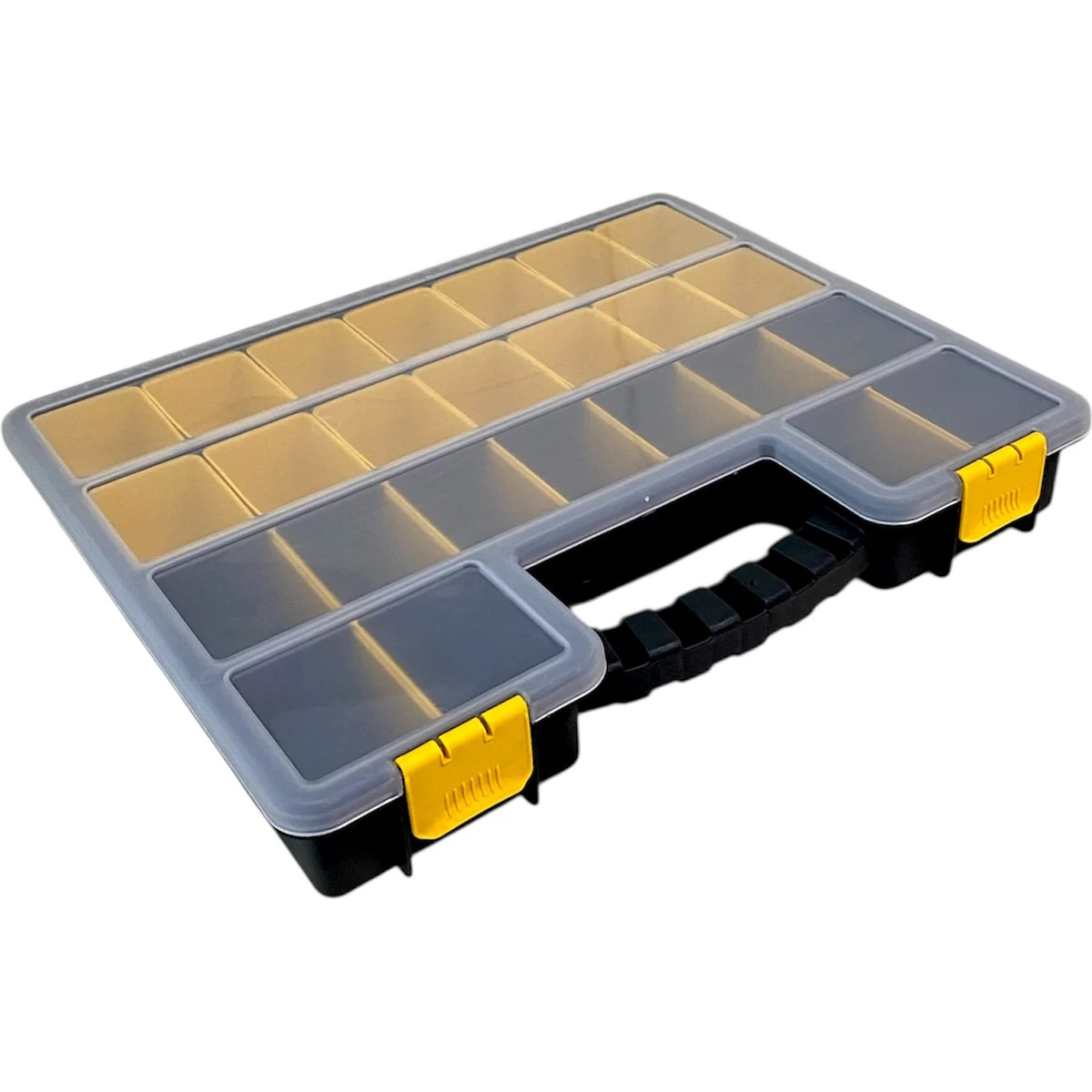 Черно-желтая цветовая гамма и современный дизайн делают этот органайзер эстетичным дополнением интерьера. Благодаря легкому весу 0.96 кг и съемным перегородкам, его использование максимально удобно. Изготовлен из пластика с ударопрочной конструкцией без металлических элементов, что повышает долговечность и безопасность при эксплуатации. Отличный выбор для тех, кто ценит порядок и функциональность в хранении личных вещей или рабочих принадлежностей.