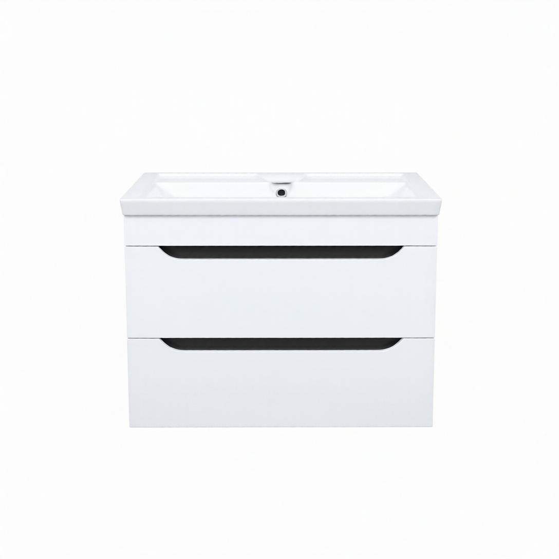 Подвесная тумба для ванной Ray с умывальником и выдвижными ящиками – универсальная и практичная мебель, которая будет отлично смотреться в любом современном интерьере. Сочетание белого цвета, светло-серых элементов фасада и тёмно-серых ящиков создаёт стильный дизайн вне времени. У тумбы увеличенная высота, что делает её более вместительной и удобной.