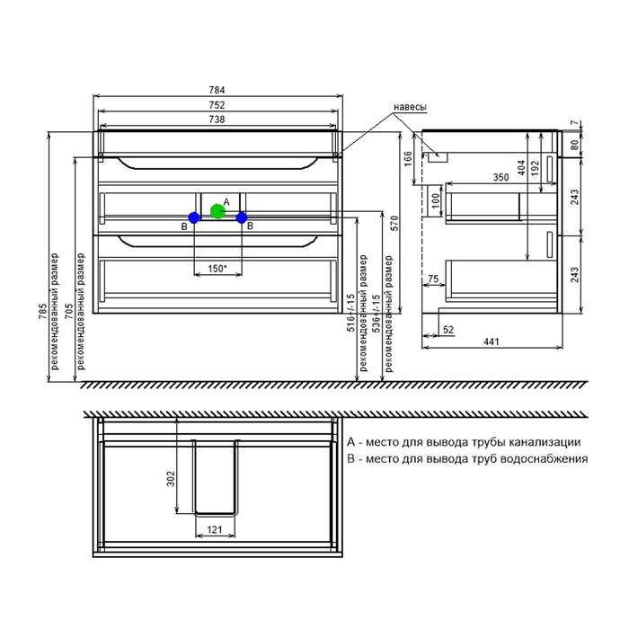 Тумба-умывальник IDDIS Ray 80 подвесная + раковина