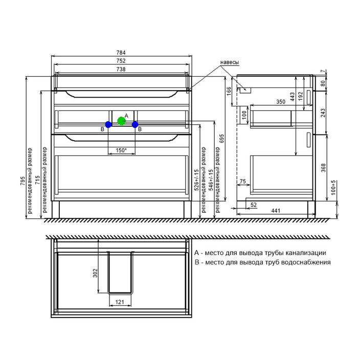 Пластиковая защита сифона внутри ящиков увеличивает долговечность и влагостойкость тумбы.