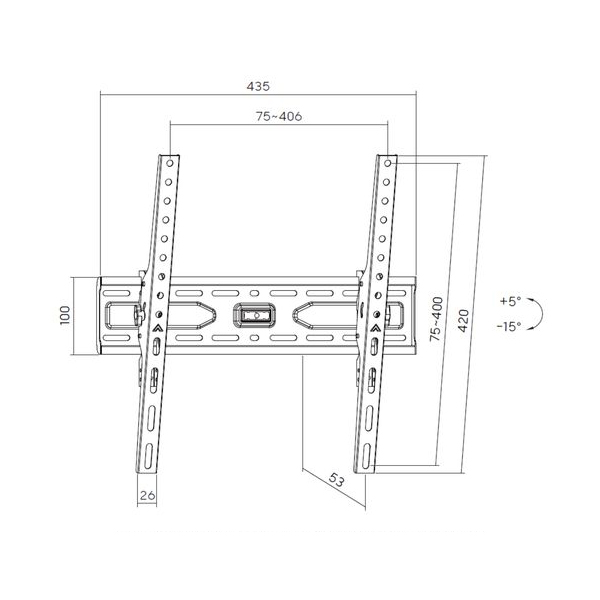 Настенный кронштейн iTECHmount PLB440NT с функцией наклона позволит надежно и без лишних затрат закрепить телевизор диагональю от 32" до 65" и весом до 45 кг на стене вашего дома или офиса. Фиксированный отступ от стены данной модели составляет 53 мм. Функция наклона позволит зафиксировать телевизор под углом до 5° вверх до 15° вниз.