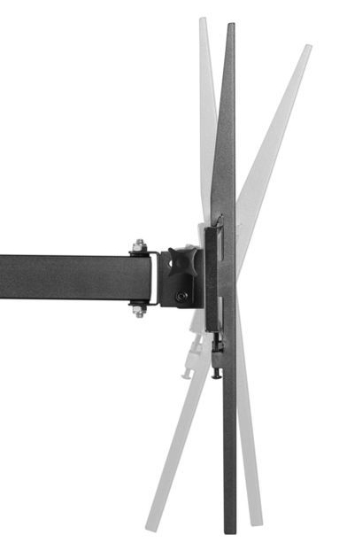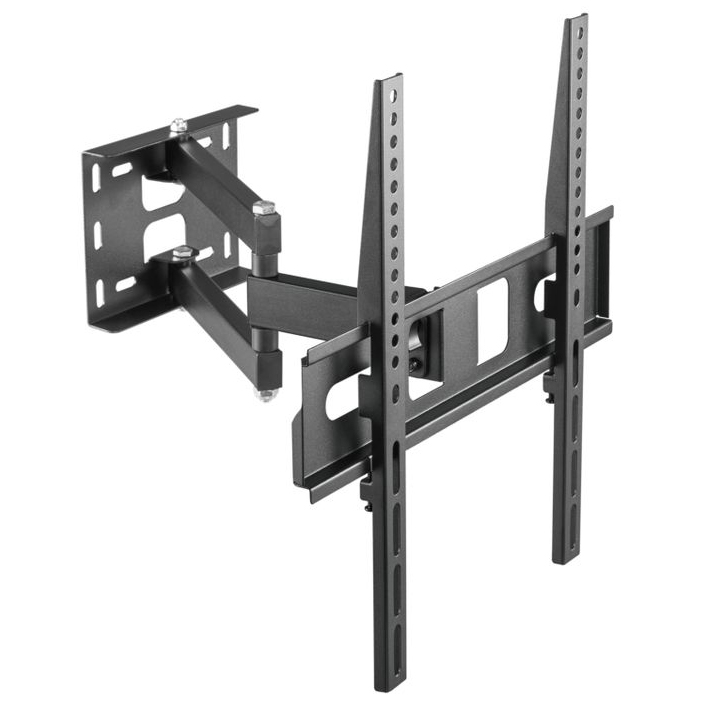 Данная модель кронштейна имеет 3 степени свободы, позволяет регулировать угол наклона вашего телевизора в диапазоне 5° вверх и 18° вниз, а так же угол поворота экрана до 180°. Вы так же сможете задать необходимый вам отступ от стены в диапазоне от 105 до 429 мм.