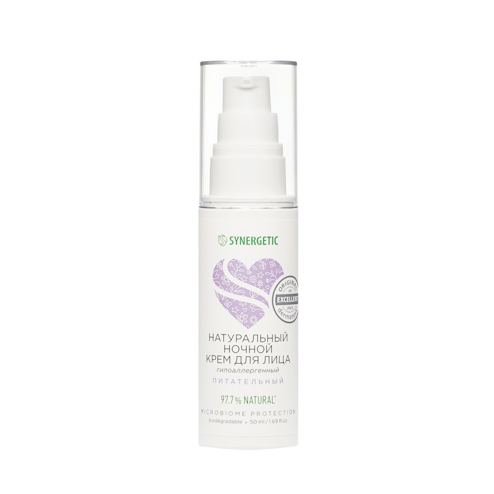 Натуральный питательный крем для лица SYNERGETIC ночной бережно ухаживает за кожей лица, эффективно питает и идеально подходит для ежедневного применения. Комплекс масел макадамии, кокоса и карите в сочетании со скваланом питают, увлажняют и смягчают кожу, уменьшая чувство стянутости, способствуя сохранению упругости и эластичности, а натуральный пребиотик трегалоза помогает нормализовать и сохранить естественный микробиом кожи. Безопасная формула с высокой концентрацией натуральных компонентов не содержит парабенов, минеральных масел, силиконов, красителей и компонентов животного происхождения. Крем не тестируется на животных и сертифицирован британской организацией The Vegan Society. Знак Vegan - мировой стандарт этичной продукции.