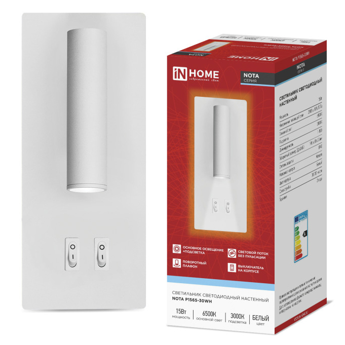 Светильники серии Nota с двумя выключателями на корпусе имеют два режима освещения: поворотный основной с холодным светом и подсветка с теплым светом. Поворотный плафон обеспечивает оптимальное направление света. Отсутствие вредных пульсаций светового потока обеспечит комфортный и безопасный свет для глаз.