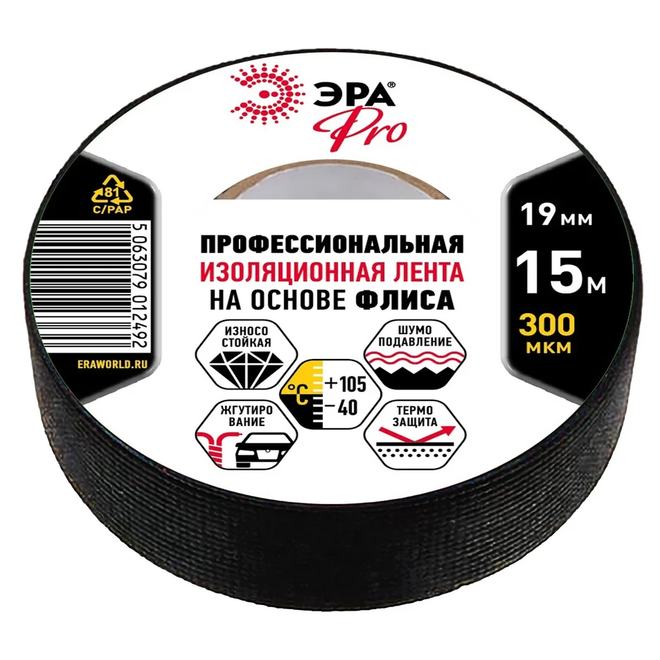 ЭРА Pro PROFLEEC1915 – профессиональная изолента на флисовой основе. Чаще всего применяется как автомобильная изолента. Обеспечивает защиту проводов от негативного воздействия экстремальных температур и механических повреждений. С помощью изоляционной ленты на флисе обматывают электрические провода для уменьшения шума, снижения вибрации, скрипа в салоне автомобиля. Новая изолента ЭРА Pro на основе флиса – идеальное решение для обмотки проводов в моторном отсеке, особенно в зонах повышенного трения.