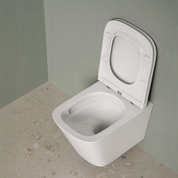 Унитаз отличают безупречные прямоугольные грани и модная эстетика минимализма, что вместе с плоским сиденьем обеспечивает комфорт и гигиеничность при использовании.