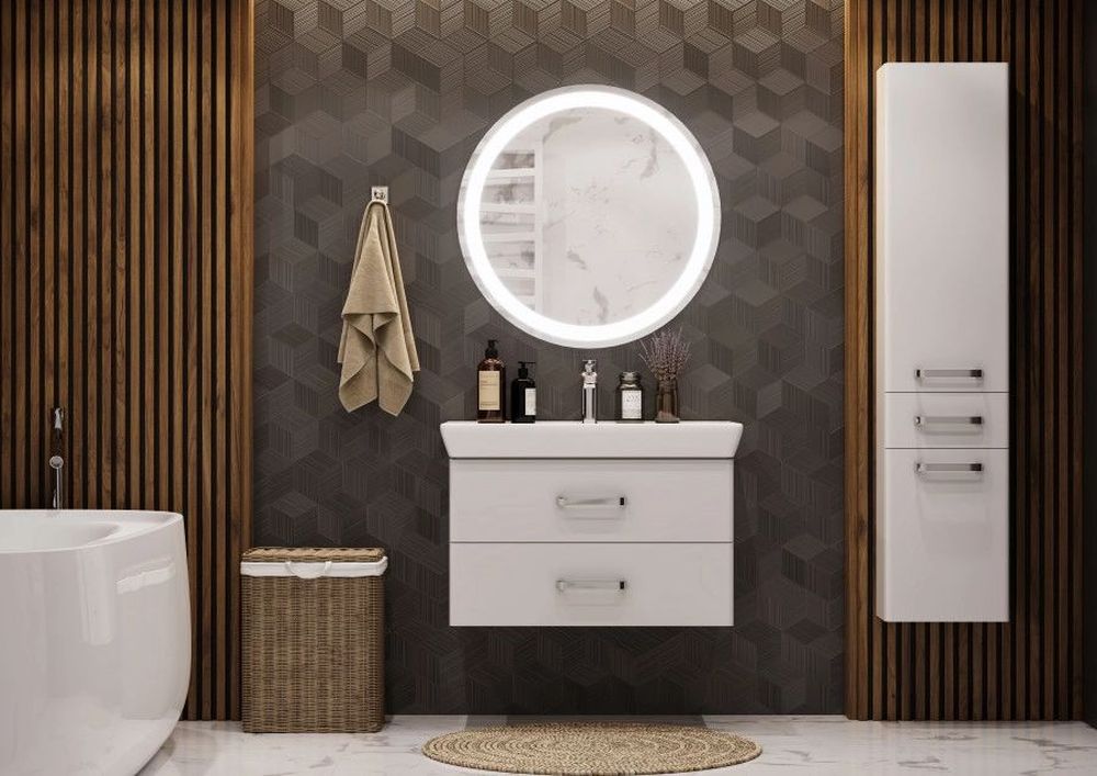 Круглая модель зеркала Анелло отлично подойдет для современных интерьеров и удачно комбинируется с различными комплектами мебели AQUATON. Подсветка включается с помощью тач-выключателя, интенсивность регулируется за счет встроенного диммера. Нейтральная температура свечения 4500К комфортна для восприятия глаза. Зеркало также оснащено системой антизапотевания Antisteam. Класс защиты IP44 означает, что зеркало можно использовать внутри влажных помещений типа санузла или ванной: они защищены от попадания случайных брызг и капель воды и от проникновения твердых предметов.