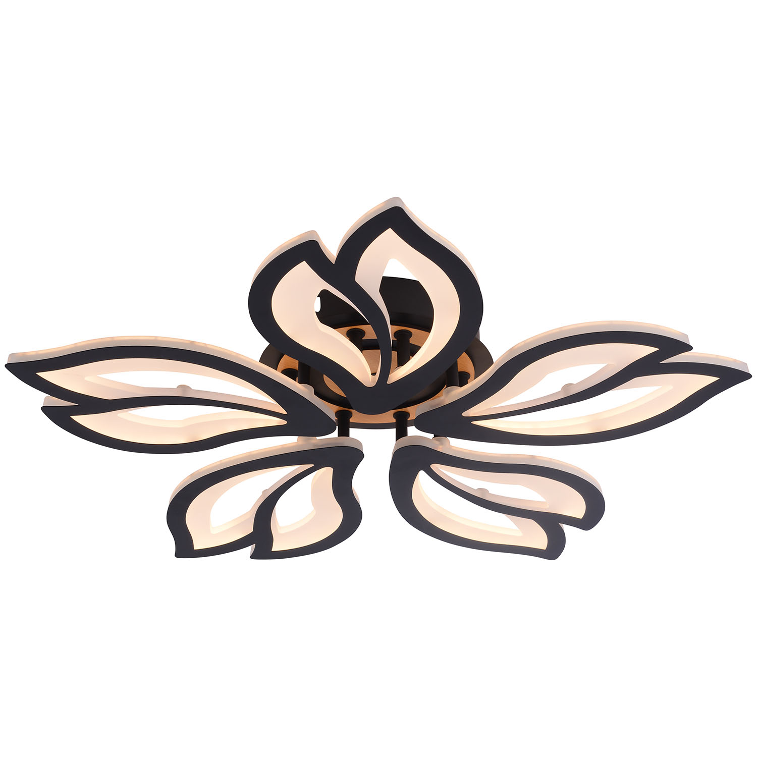 Серия черных светодиодных потолочных светильников с элементами натурального дерева включает модели мощностью 60 и 100 Вт. В комплекте пульт ДУ для удобного регулирования яркости и цветовой температуры от 3000 до 6250 К, позволяя настроить освещение под любые потребности и атмосферу.