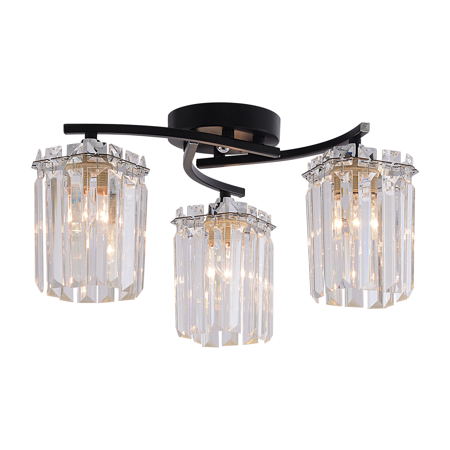 Коллекция черных светильников включает люстры на 3 и 6 рожков с цоколем E27 и бра с встроенным выключателем. Максимальная мощность лампы 60Вт (в комплект не входит). Плафоны из кристаллов создают утонченную атмосферу в интерьере.