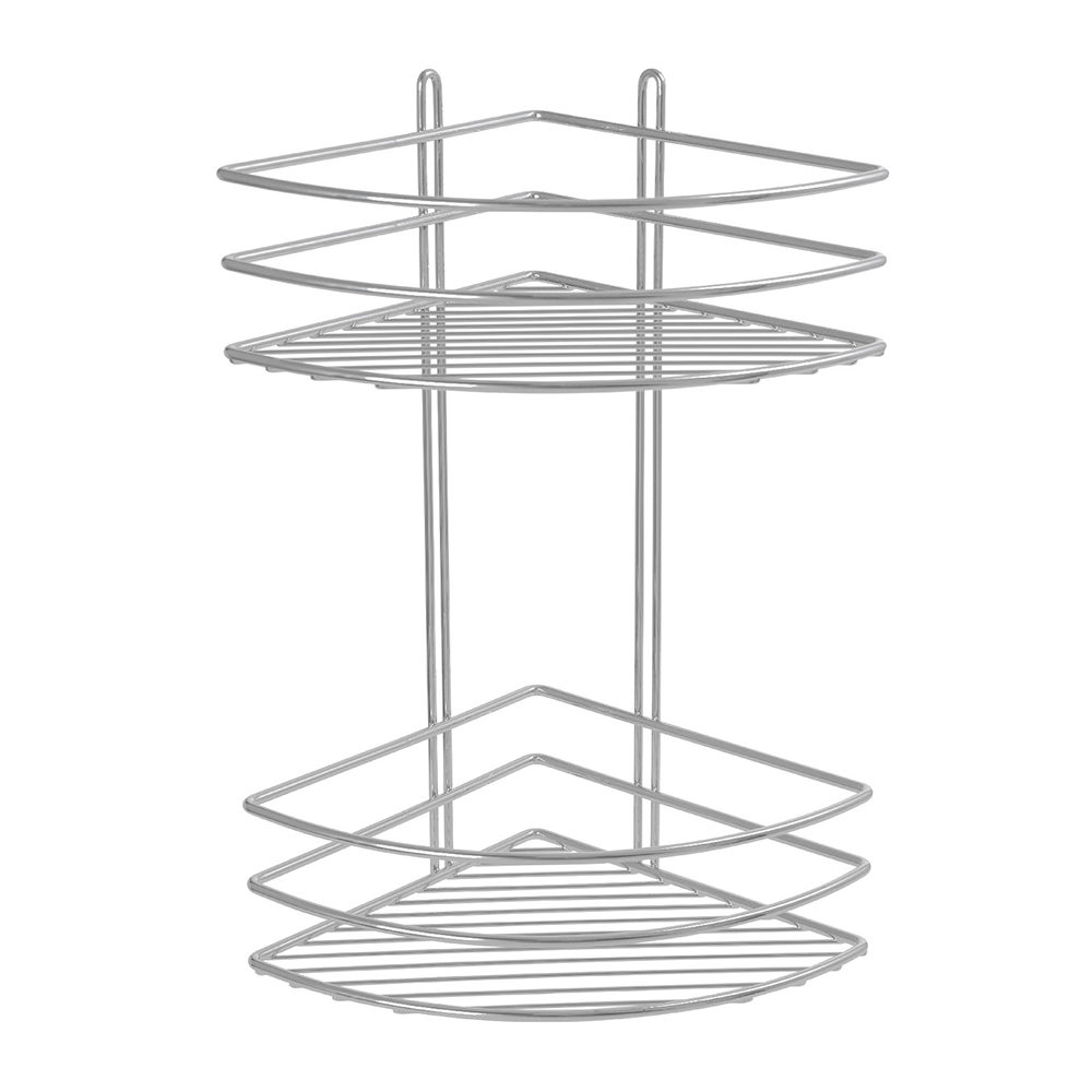 Полка угловая двухэтажная серая FX-710-2 - изящный влагостойкий аксессуар с защитой от нагрузок и царапин. Скругленные формы минимизируют вероятность травмирования. Решетка конструкции ускоряет процесс высыхания. Материал полки — стальная основа с порошковым покрытием эффекта муар. Монтаж осуществляется навешиванием на винты.
