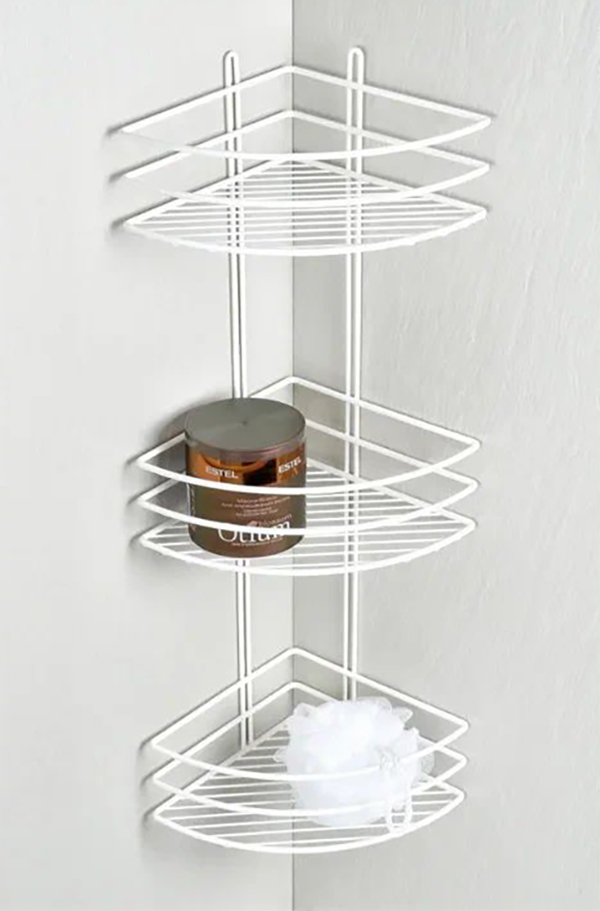 Полка угловая трехэтажная серая FX-710W-3 - изящный влагостойкий аксессуар с защитой от нагрузок и царапин. Скругленные формы минимизируют вероятность травмирования. Решетка конструкции ускоряет процесс высыхания. Материал полки — стальная основа с порошковым покрытием эффекта муар. Монтаж осуществляется навешиванием на винты.