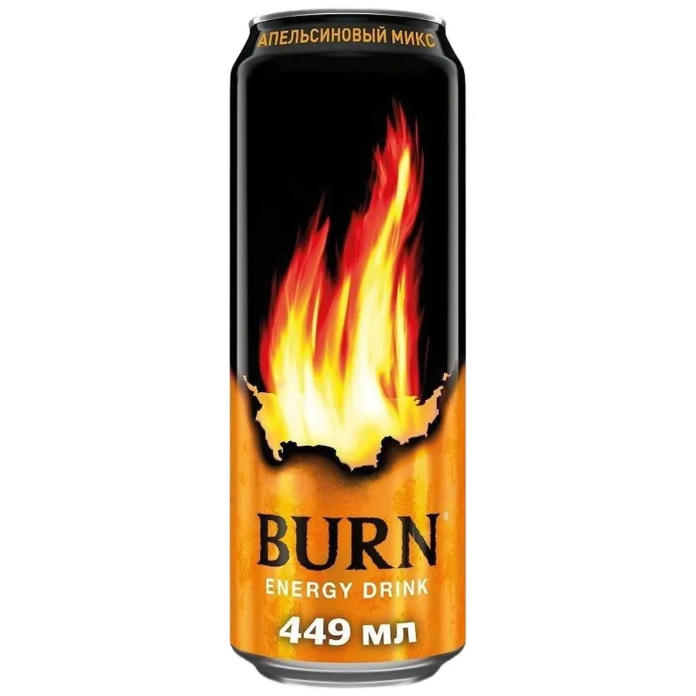 Энергетический безалкогольный напиток BURN Апельсиновый микс с насыщенным вкусом апельсина. Придаёт бодрость, повышает работоспособность и концентрацию внимания.