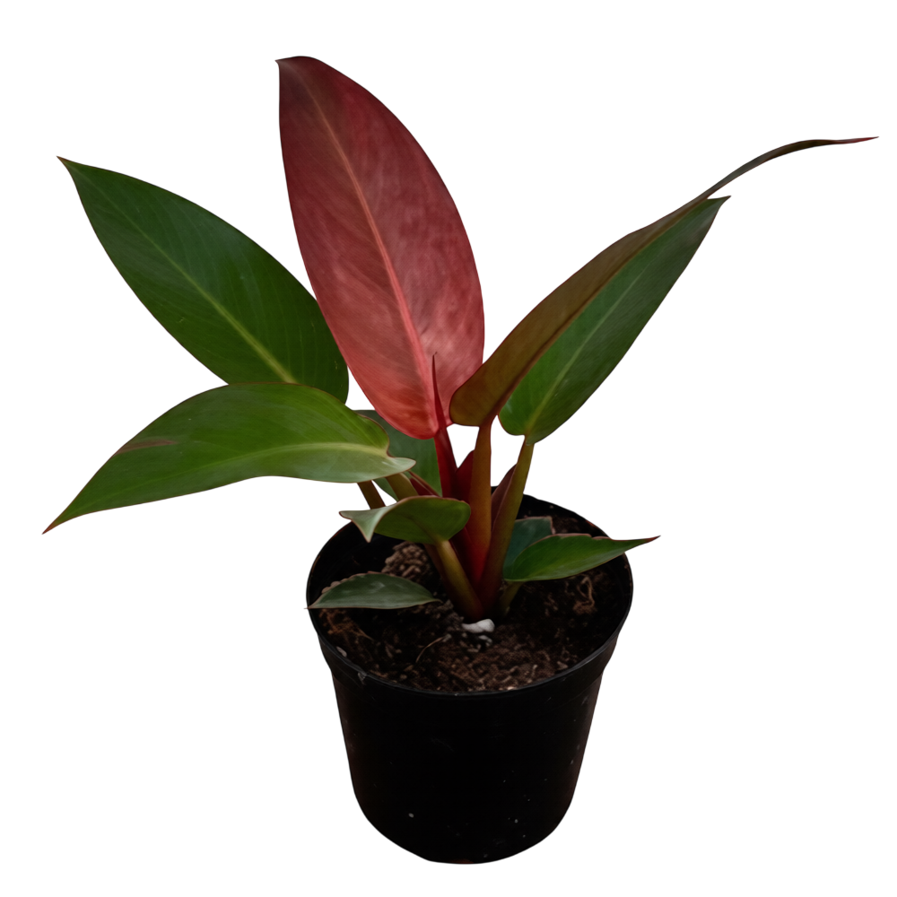 Филодендрон Ред Сан (Philodendron Red Sun) — компактное горшечное растение с эффектной листвой, идеально подходящее для домашнего интерьера. Его главная особенность — крупные глянцевые листья сердцевидной формы, которые в процессе роста меняют цвет от ярко-красного или медного оттенка у молодых листьев до насыщенного темно-зеленого у зрелых, создавая живописный контраст в одной розетке. Растение имеет аккуратный, не раскидистый габитус, что делает его удобным для размещения на подоконниках, полках или рабочих столах.