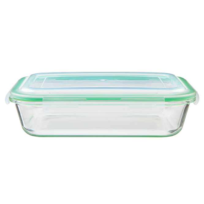 Ёмкость изготовлена из жаропрочного стекла. Этот материал отличается высокой термостойкостью, выдерживая значительные перепады температур без повреждения. Он химически инертен, не впитывает запахи и жиры, что позволяет хранить в нём разные продукты без смешивания ароматов.