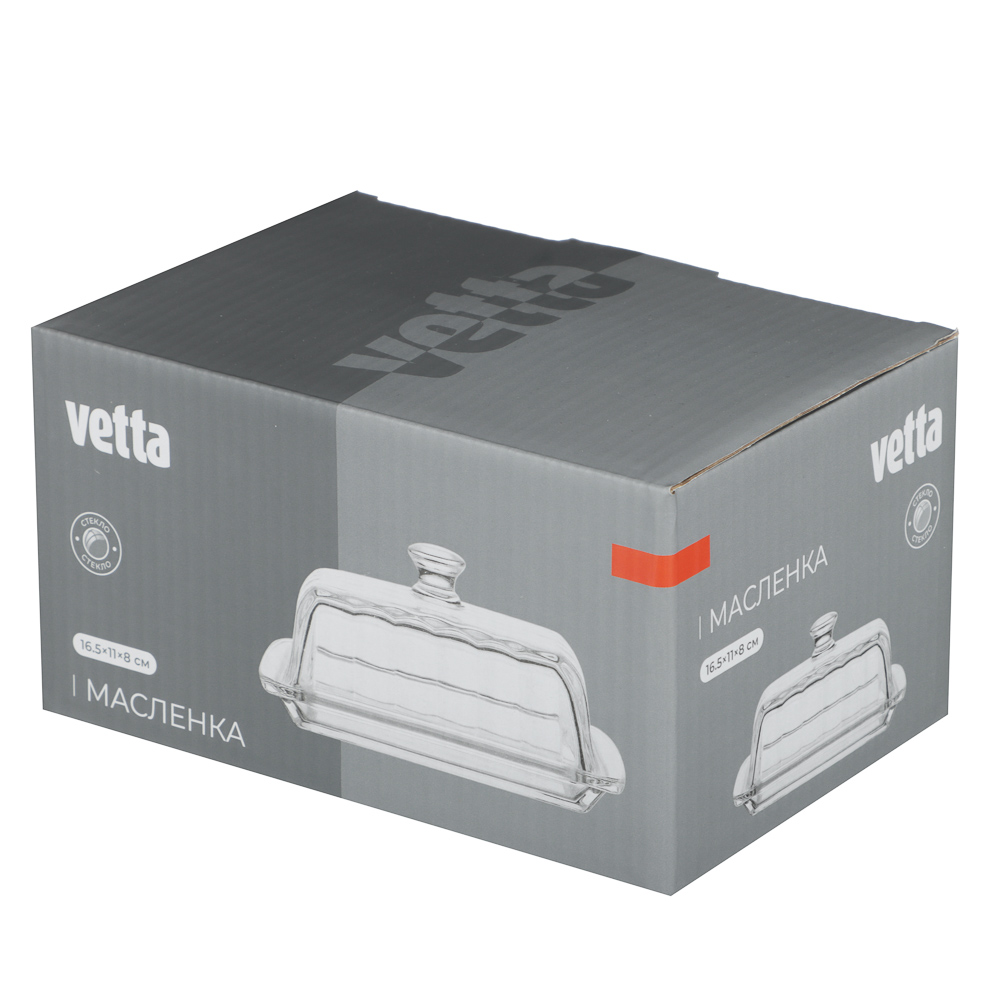 Изящный аксессуар для подачи сливочного масла к завтраку. Масленка из прозрачного стекла создана специально для тех, кто ценит эстетику и особый шарм в сервировке. Имеет оптимальный размер для стандартной пачки масла, а герметичная крышка надежно защищает масло от преждевременного окисления и воздействия посторонних запахов.