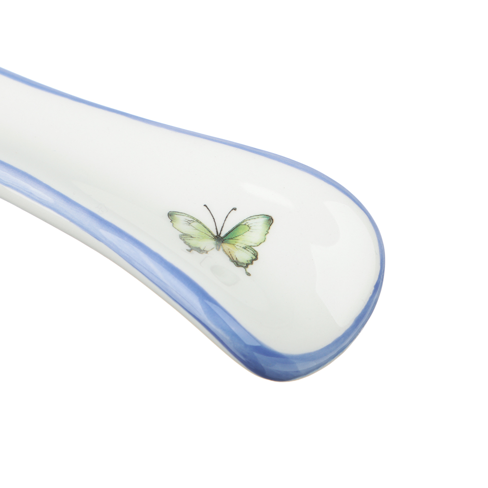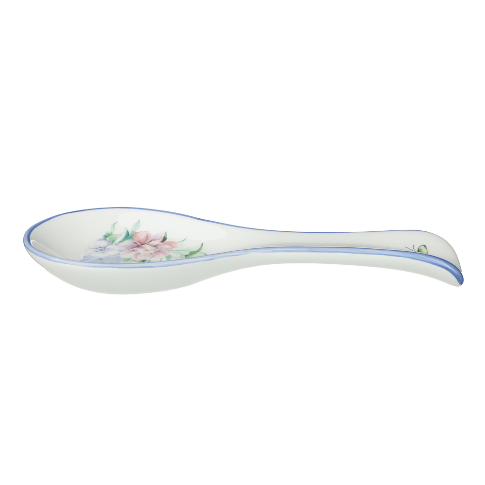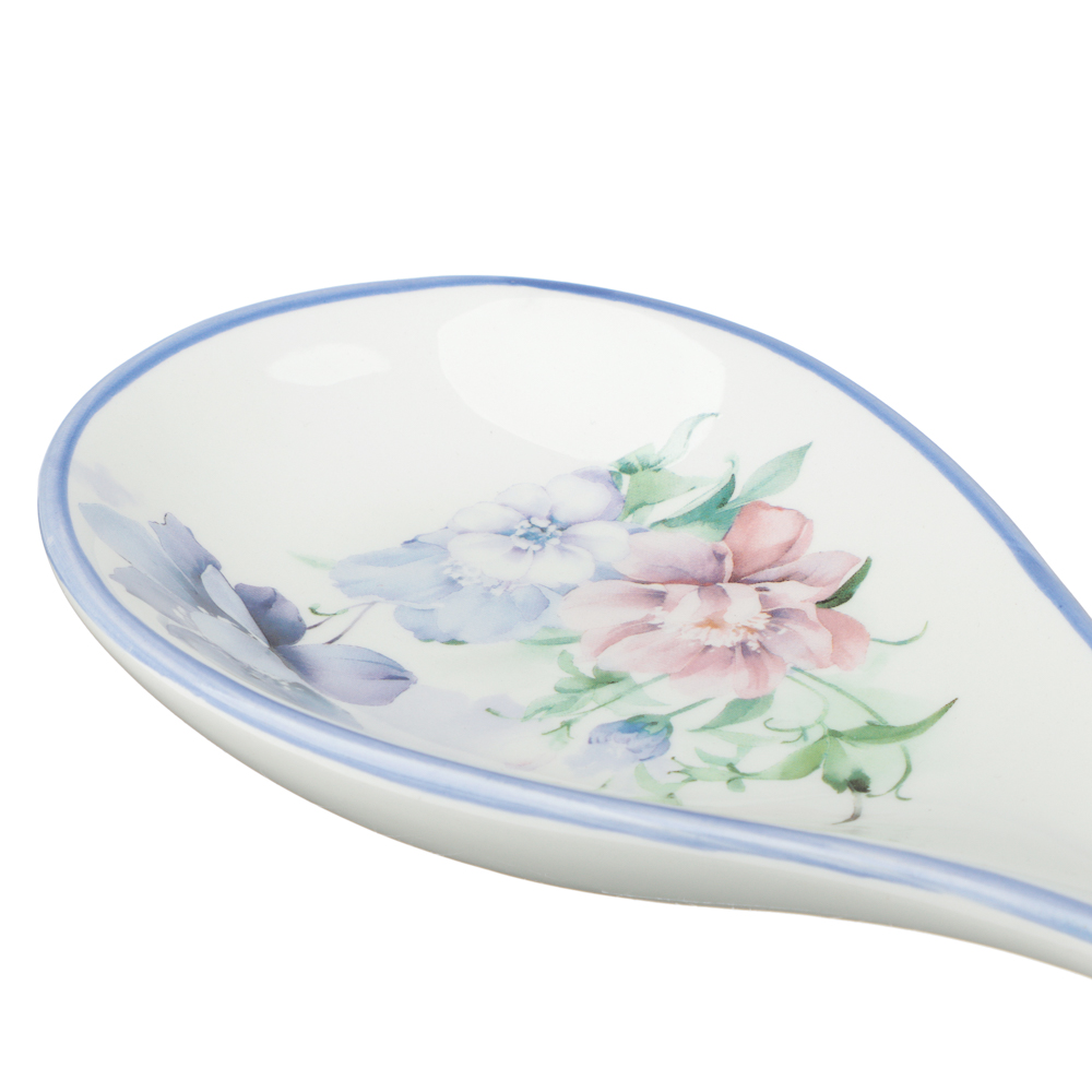 Подставка под ложку MILLIMI «Гарден» – это функциональный аксессуар, который поможет сохранить чистоту и порядок на кухне во время приготовления еды, а также послужит в качестве изящного интерьерного декора. Удлиненная форма с желобком надежно удерживает ложку, половник или лопатку, предотвращая попадание капель и пятен на столешницу или скатерть.