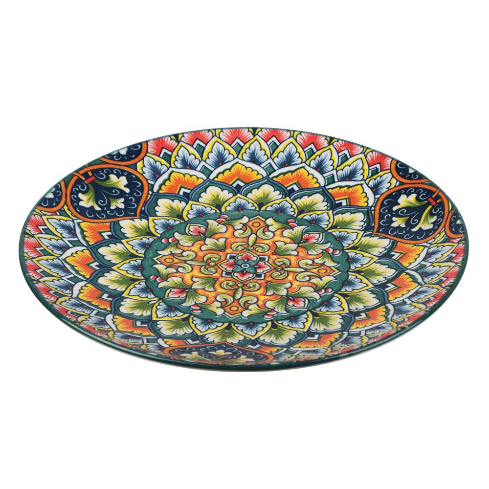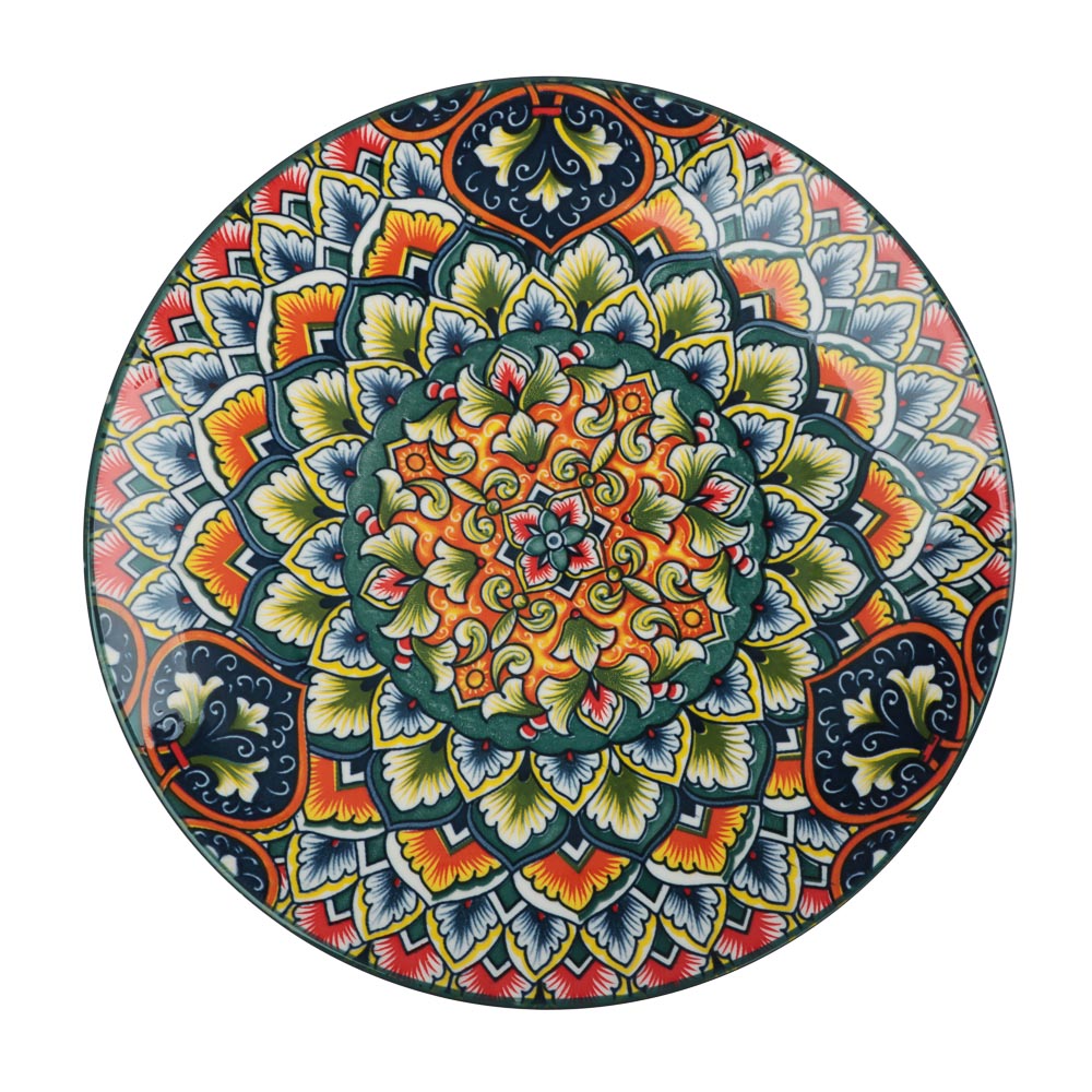 Тарелка тм MILLIMI «Ориентал», размер 21,5х21,5х2 см, керамика станет ярким акцентом в сервировке обеденного стола. Яркий выразительный орнамент в восточном стиле добавит самобытности и аутентичности сервировке, а также создаст атмосферу гостеприимства и домашнего уюта за столом. Идеально подходит для подачи закусок, десертов или фруктов на общий стол. Качественная керамика с глянцевой поверхностью обладает высокой прочностью, не впитывает запахи, легко моется, поэтому посуда будет служить долгие годы.