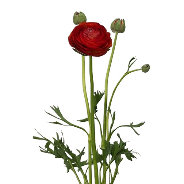 Лютик (Ранункулюс) Азиатский Ред - высота растения 45-50 см. Цветы полумахровые оранжевые, по форме напоминают маленькие розочки. Лепестки шелковистые, блестящие. Цветут в течение месяца, после чего листва отмирает и растение уходит на покой. Изысканно смотрятся в цветниках и контейнерной культуре.