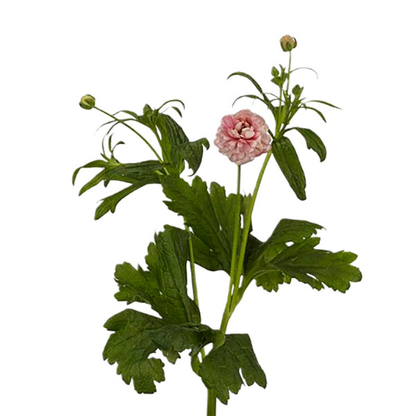Лютик (Ранункулюс) Баттерфляй Гера - высота растения 75-80 см. Необычайно красивый лютик букетного типа. На одной веточке формируется по 5-7 цветов. Быстро набирает популярность, благодаря восхитительным нежным цветам и резной декоративной листве. Цветки розовые, в процессе цветения окраска на краях лепестков меняется до нежно-розовой. Дает отличную срезку.