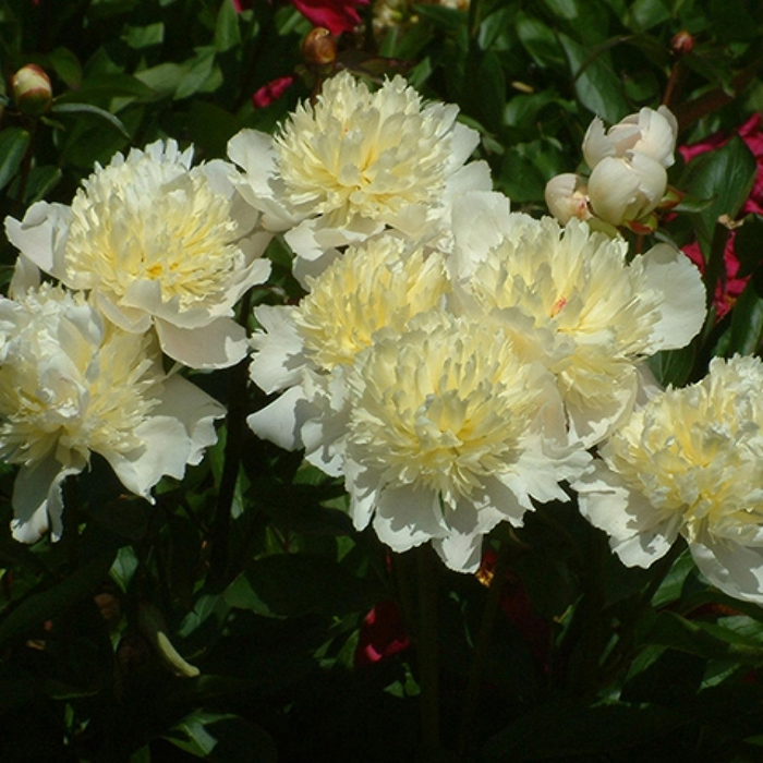 Пион молочноцветковый Лаура Десерт — очаровательный нежный сорт, выведенный во Франции, который быстро завоевал популярность и любовь цветоводов. На кусте, высотой 80–90 см (иногда до 100 см) в середине лета распускаются бутоны поистине удивительной красоты! Соцветия пиона словно изысканный десерт: белоснежная коронка из волнистых широких внешних лепестков напоминает воздушную шапку взбитых сливок, а более яркая кремово-жёлтая махровая сердцевина переливается, как нежный сливочный крем. Лёгкий желтоватый оттенок по краям белых лепестков добавляет композиции утончённую ноту, будто тонкий слой карамели на изысканном лакомстве.