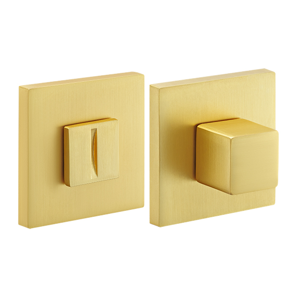 Сантехнические завертки предназначены для запирания двери в ванную комнату или туалет изнутри, обеспечивая приватность во время гигиенических процедур. Покрытие «матовое сатинированное золото» придает фурнитуре благородный, сдержанный блеск, который хорошо сочетается с сантехникой и смесителями в золотистых тонах.