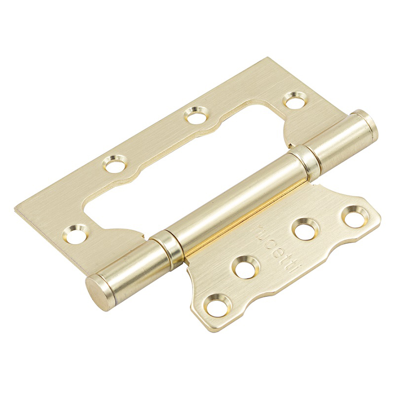 Петля накладная RFHN-100х75х2,5 MSG цвета «матовое сатиновое золото» предназначена для крепления межкомнатных дверей. Принципиальное отличие данной петли состоит в том, что она не нуждается в дополнительных пазах для посадки, что значительно экономит время при монтаже дверного блока. Эту петлю так же часто называют «петля без врезки». Петля универсальная — не имеет правой и левой стороны.