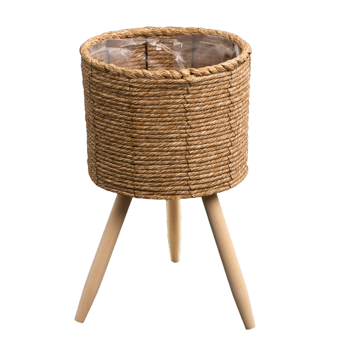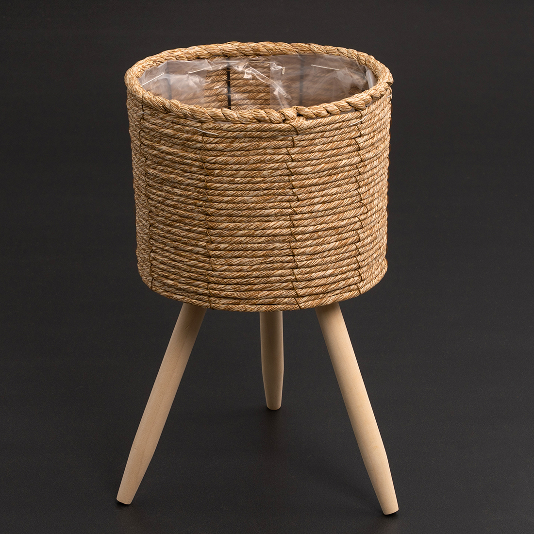 Создайте неповторимую атмосферу природы у себя дома с этим декоративным кашпо! Изделие, выполненное в технике искусного плетения и дополненное устойчивыми деревянными ножками, привносит в помещение особый шарм и тепло. Это не просто горшок для цветов, а полноценный элемент декора, который наполнит ваше пространство гармонией и подчеркнет безупречный вкус владельца
