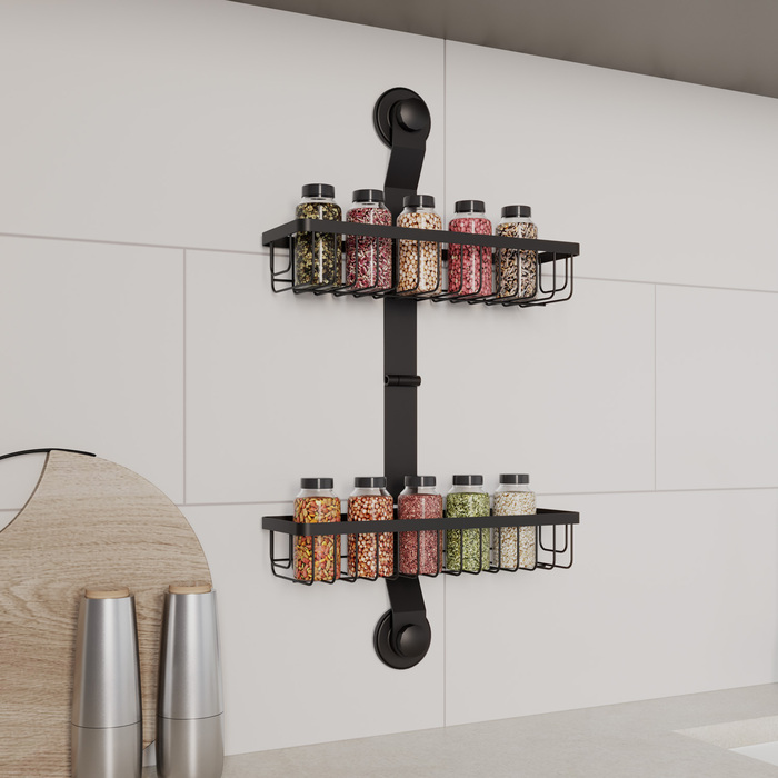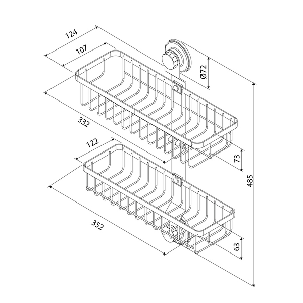 Полка из коллекции Easy предназначена для поддержания порядка в ванной или на кухне и подходит для многих интерьерных решений. Под рукой будет все необходимое: от полотенец и косметических средств до кухонных принадлежностей. Большое расстояние между ярусами (27,7 см) позволяет разместить даже высокие бутылочки. Эта модель монтируется двумя фиксаторами на клеевой слой, дополнительно усиленный вакуумом, что увеличивает сцепку клеевой основы с поверхностью стены.