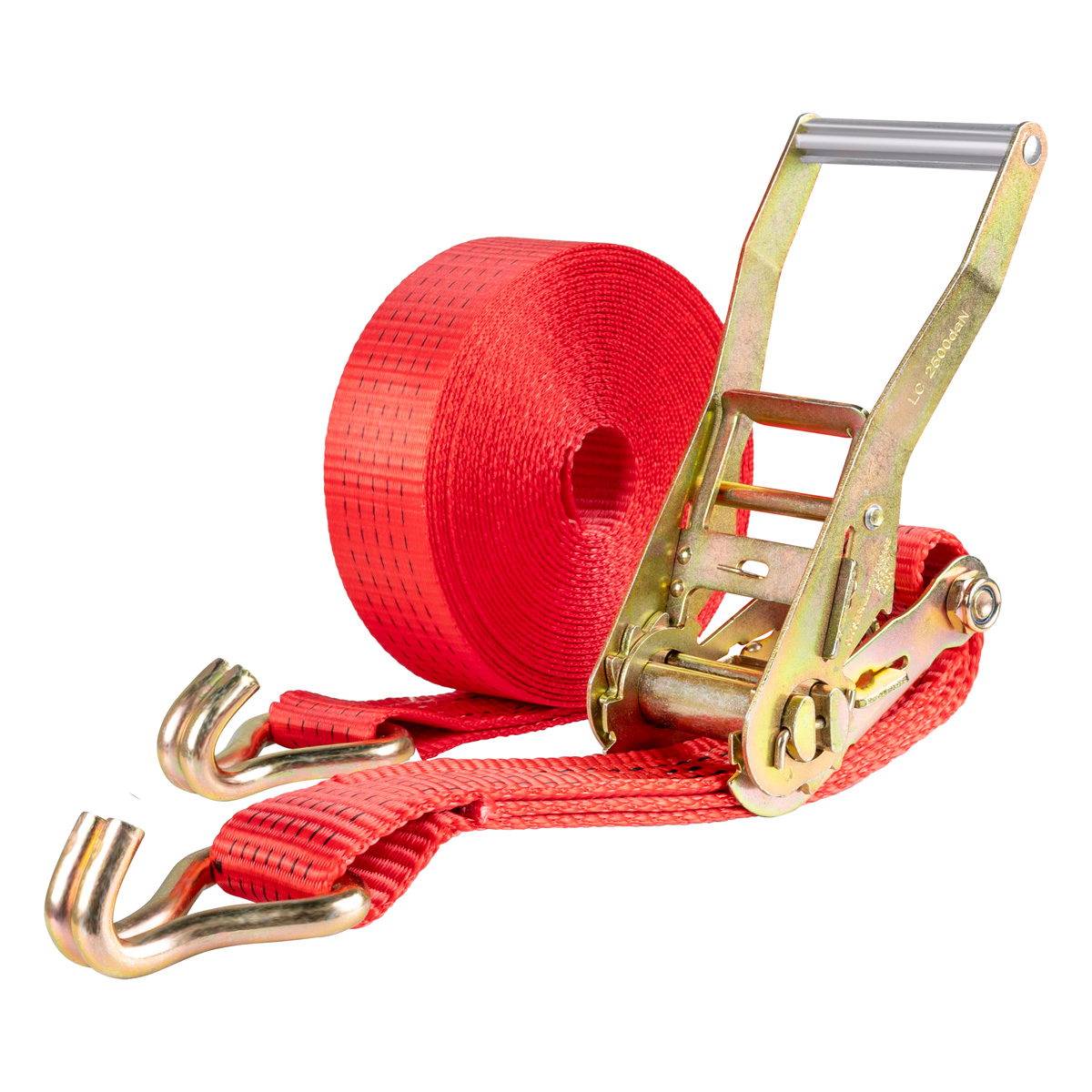 Приспособление используется для транспортировки груза на различные расстояния. Специальный способ выполнения швов обеспечивает прочность ленты, а эластичный материал способствует плавному движению во время работы. Стяжка груза имеет храповый механизм с зубцами, надежно фиксирующий груз. Лента стяжки износостойкая, малорастяжимая и очень прочная. Она не треснет при низких температурах и не боится влаги.
