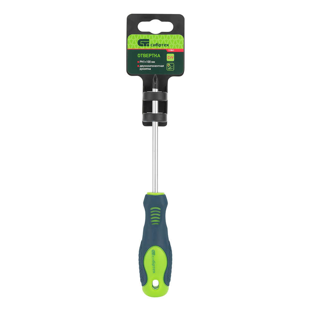 Отвертка Сибртех 11841 типоразмера PH1 х 100 мм, из стали CrV, с двухкомпонентной рукояткой и крестовым шлицем, позволяет проводить монтаж/демонтаж крепежных элементов типа Phillips. Подходит для работы в углублениях. Полупрофессиональная отвертка поможет отремонтировать бытовую технику, повесить полки, собрать мебель и выполнить другие работы.